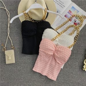 Sexy Golden Chain Strapless Camis Women Black/White/Pink Short Tops Female Elegant Fashion Tops Spring Summer New