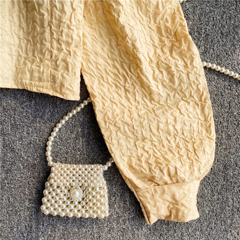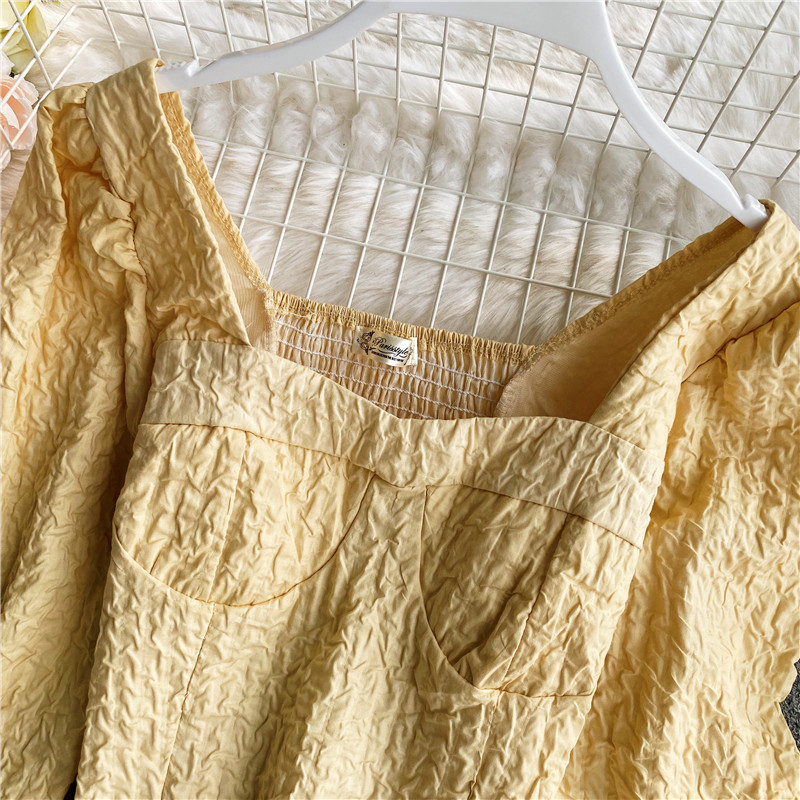 Casual Blue/Yellow Blouse For Women Square Collar Puff Long Sleeve Short Tops Female Vintage Shirts Fashion Autumn New