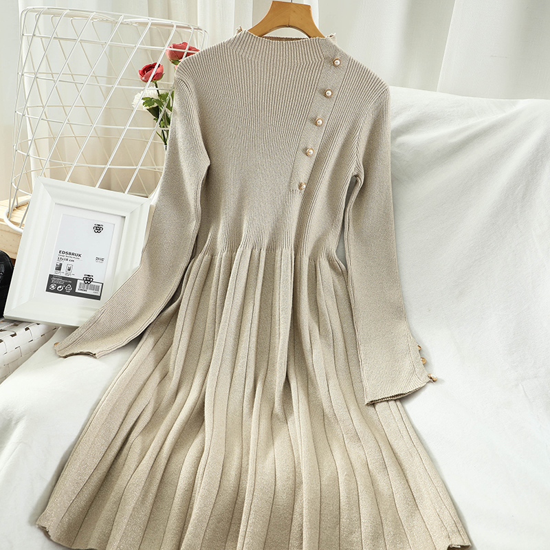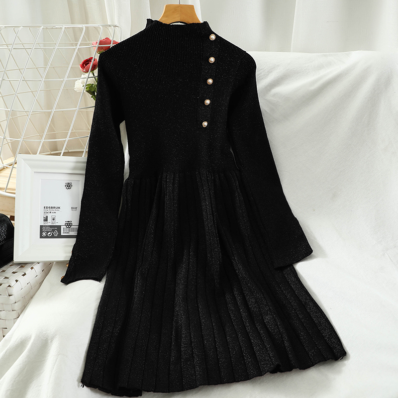 Cheap Dresses, Buy Quality Women’s Clothing Directly from China Suppliers:Vintage Black/Khaki Knitted Mini Dress Autumn Winter Casual Stand Collar Long Sleeve Vestidos Elegant Pleated Dresses New