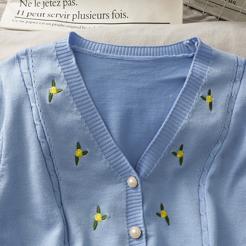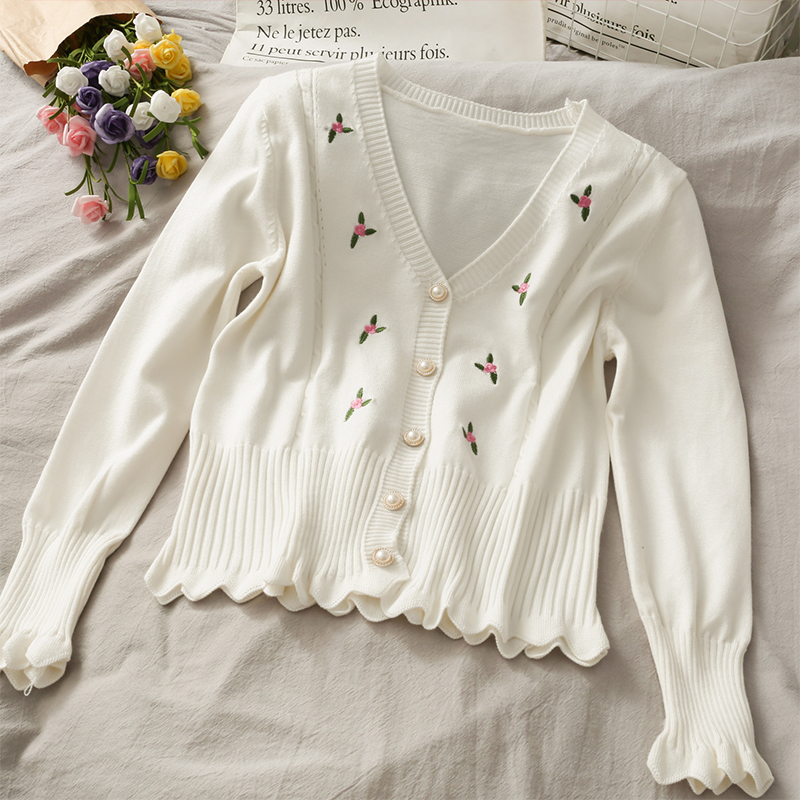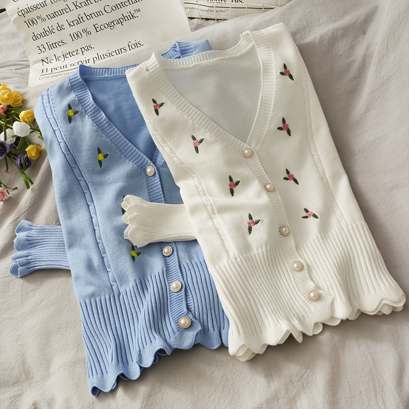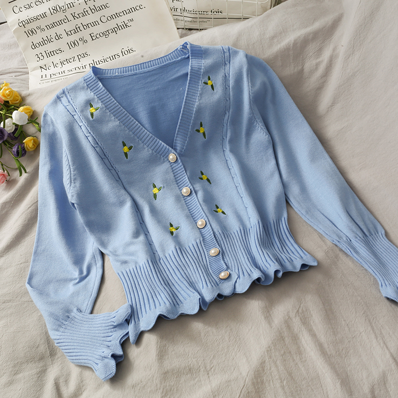 Cheap Cardigans, Buy Quality Women’s Clothing Directly from China Suppliers:Casual Women’s Embroidery Sweater Autumn Blue/White Cardigan For Female Sexy V Neck Long Sleeve Knitted Shirts Sweet Jumper