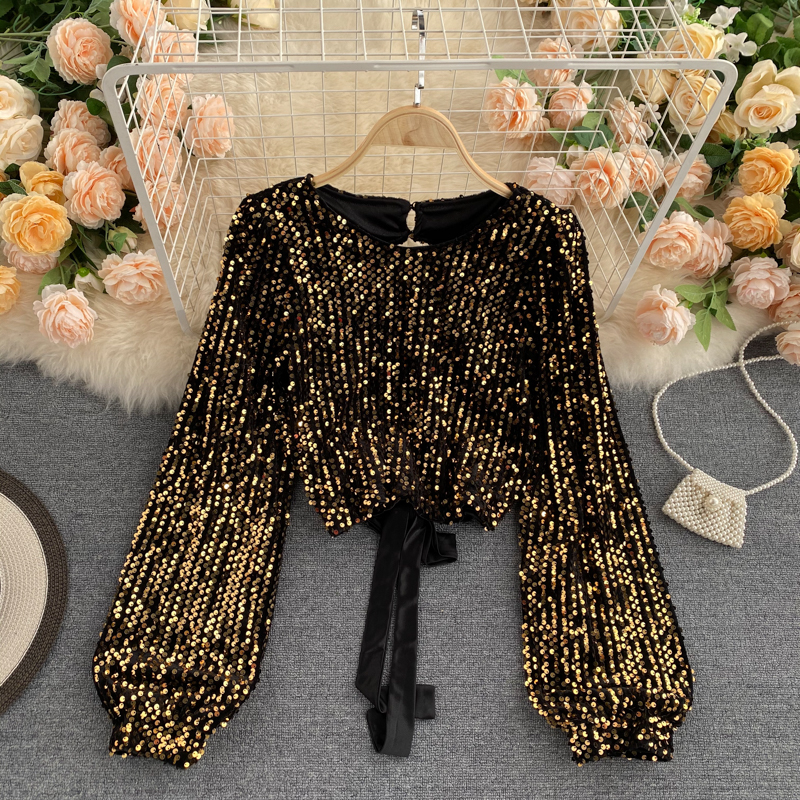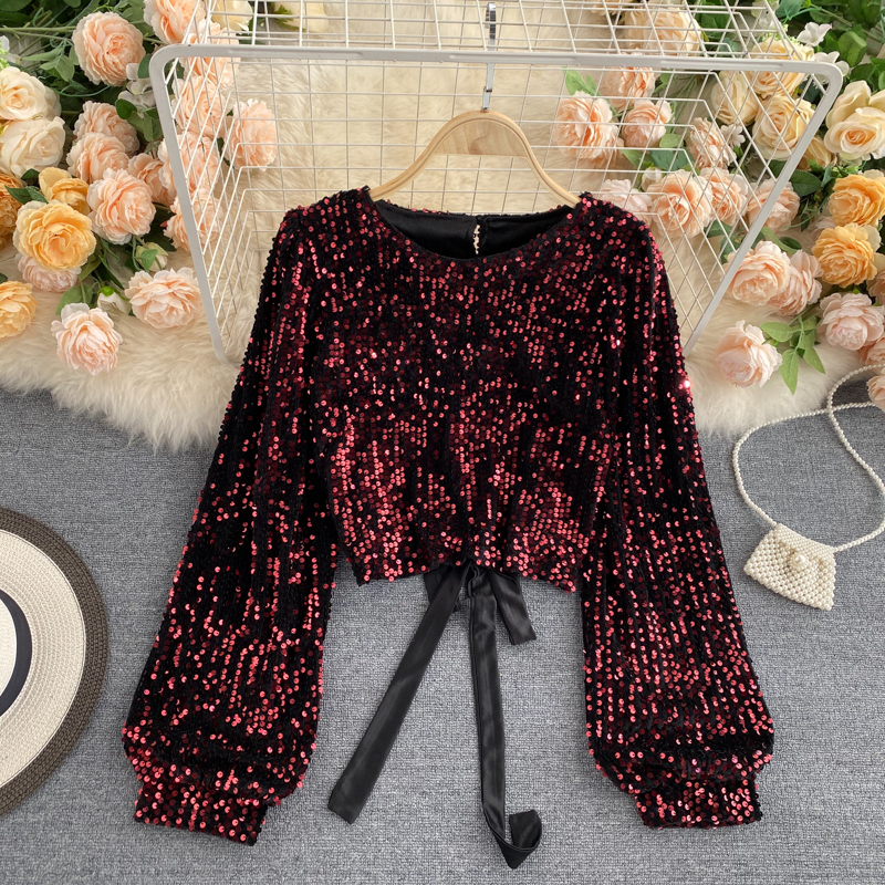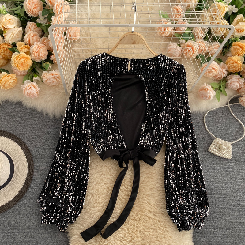 Cheap Blouses & Shirts, Buy Quality Women’s Clothing Directly from China Suppliers:Sexy Hollow Out Sequin Blouse Women O Neck Open Back Bandage Tops Elegant Black/Red Bling Club Party Shirt Autumn Fashion