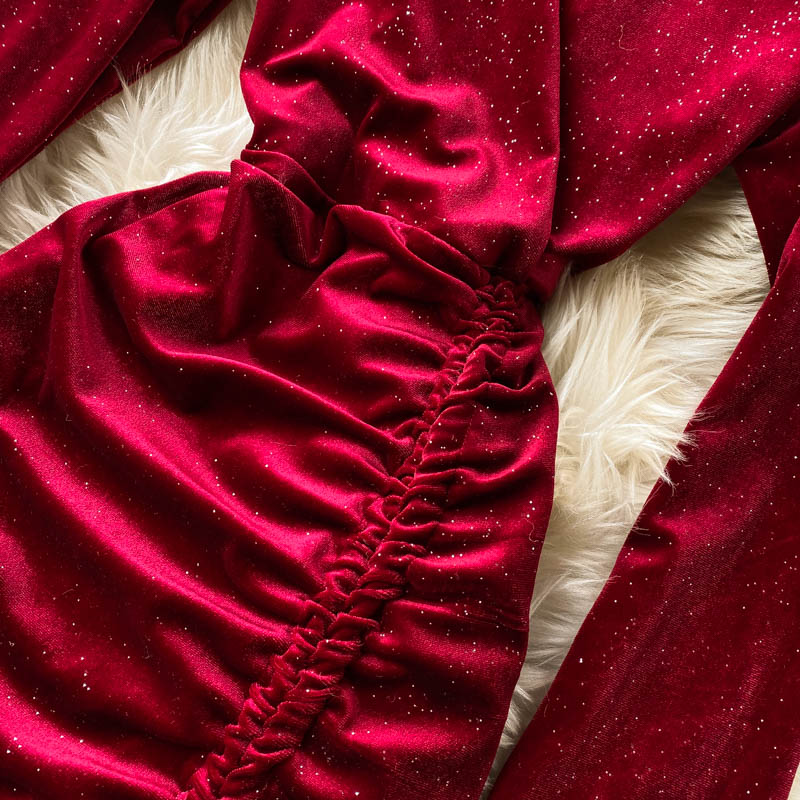 Autumn Black/Red Drawstring Velvet Party Mini Dress Women Sexy V-Neck Long Sleeve High Waist Vestidos Female New Fashion