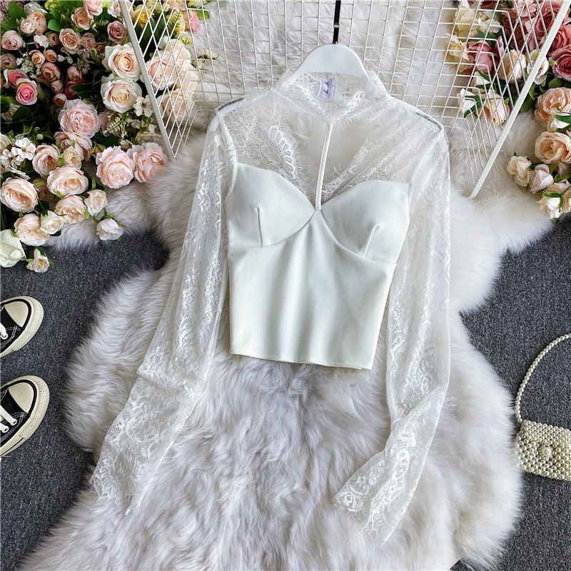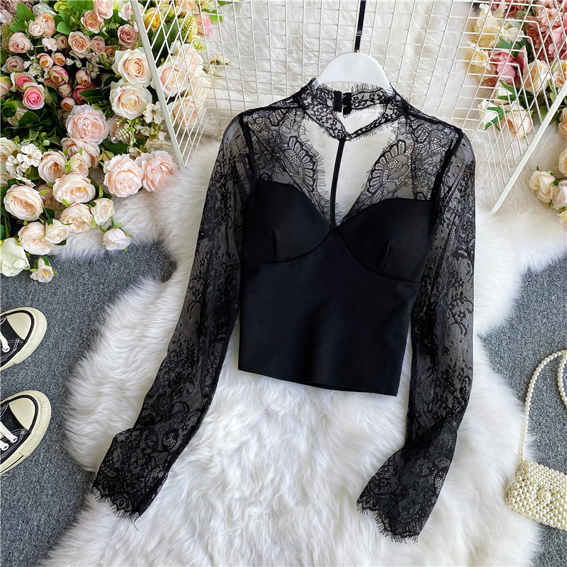 Cheap Blouses & Shirts, Buy Quality Women’s Clothing Directly from China Suppliers:Sexy Halter Lace Patchwork Blouse Women Elegant See Through Long Sleeve Black Club Party Short Tops Female Bottom Shirt Fashion