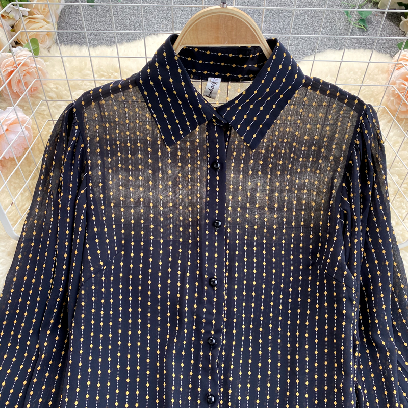 Women Black Polka Dot Chiffon Blouse Female Vintage Turn-Down Neck Lantern Long Sleeve Single Breasted Loose Shirt Spring Autumn