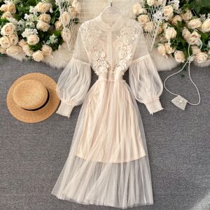 Autumn Women Pleated Midi Dress Vintage Red/Purple/Green Draped Party Vestidos Elegant Casual High Waist Long Sleeve Robe