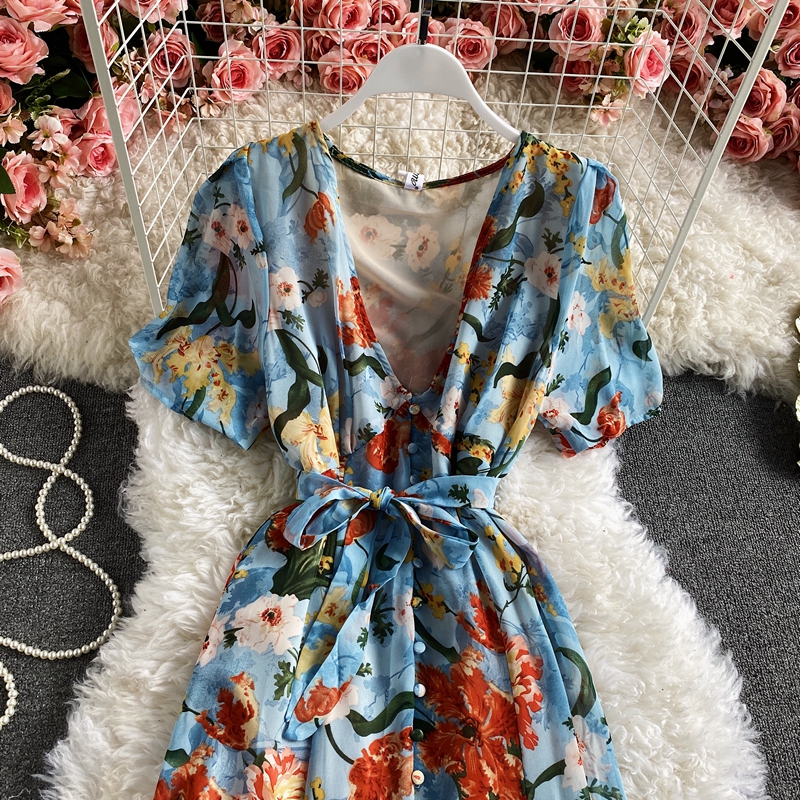 Cheap Dresses, Buy Quality Women’s Clothing Directly from China Suppliers:Bohemian Vacation Beach Floral Printed Long Dress Women Sexy V Neck Short Sleeve High Waist Ruffle Hem Vestidos Spring Summer