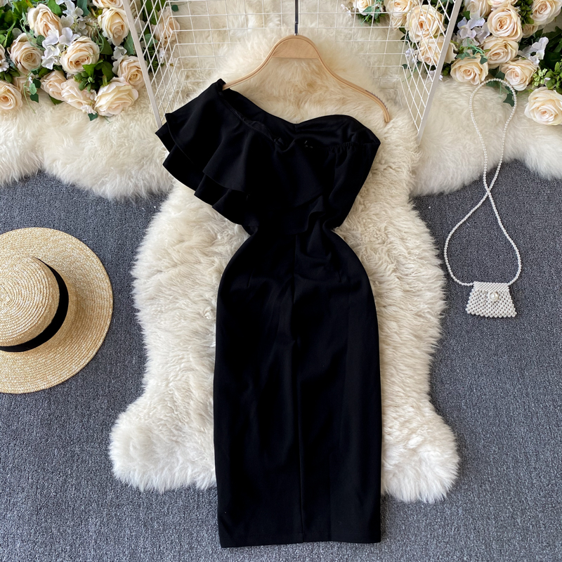 Cheap Dresses, Buy Quality Women’s Clothing Directly from China Suppliers:Sexy Slash Collar Ruffle Party Dress Women Elegant Off Shoulder High Waist Bodycon Vestidos Female Spring Summer New Robe
