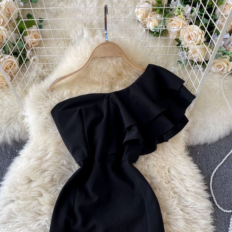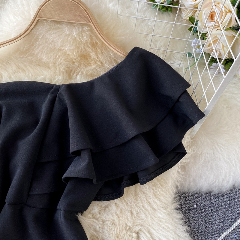 Sexy Slash Collar Ruffle Party Dress Women Elegant Off Shoulder High Waist Bodycon Vestidos Female Spring Summer New Robe