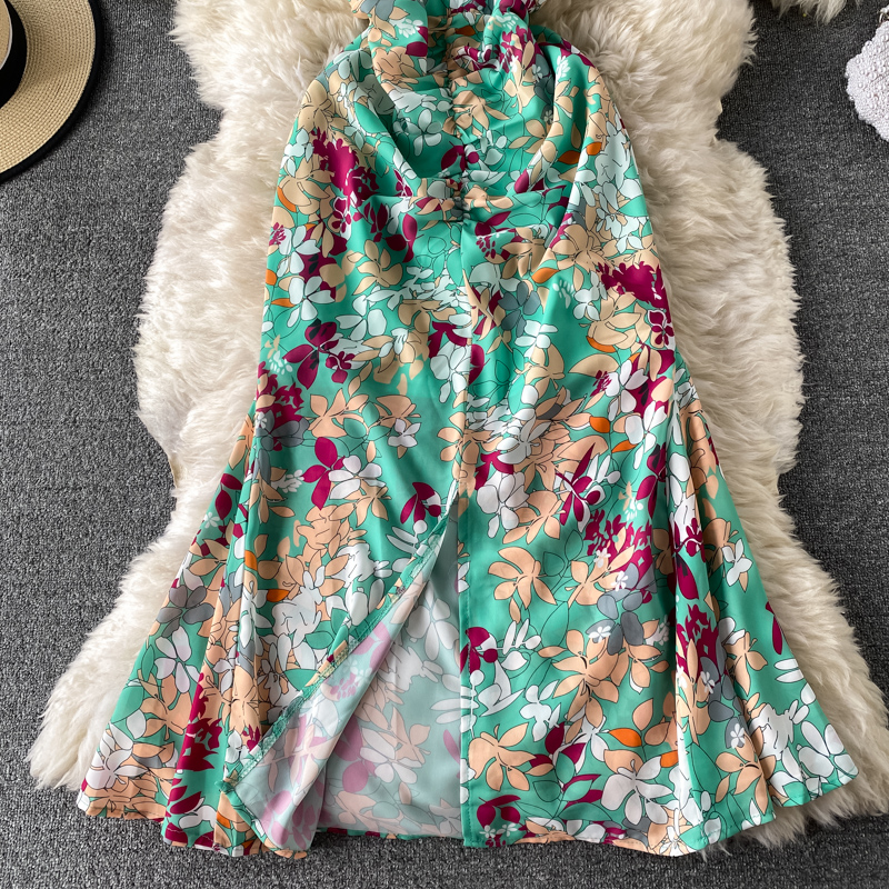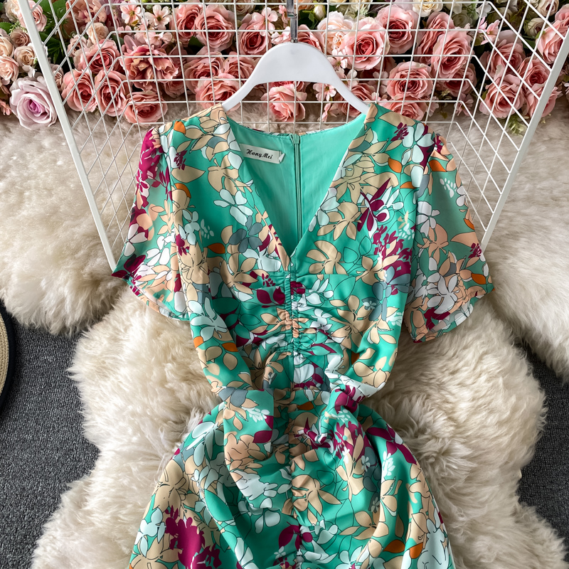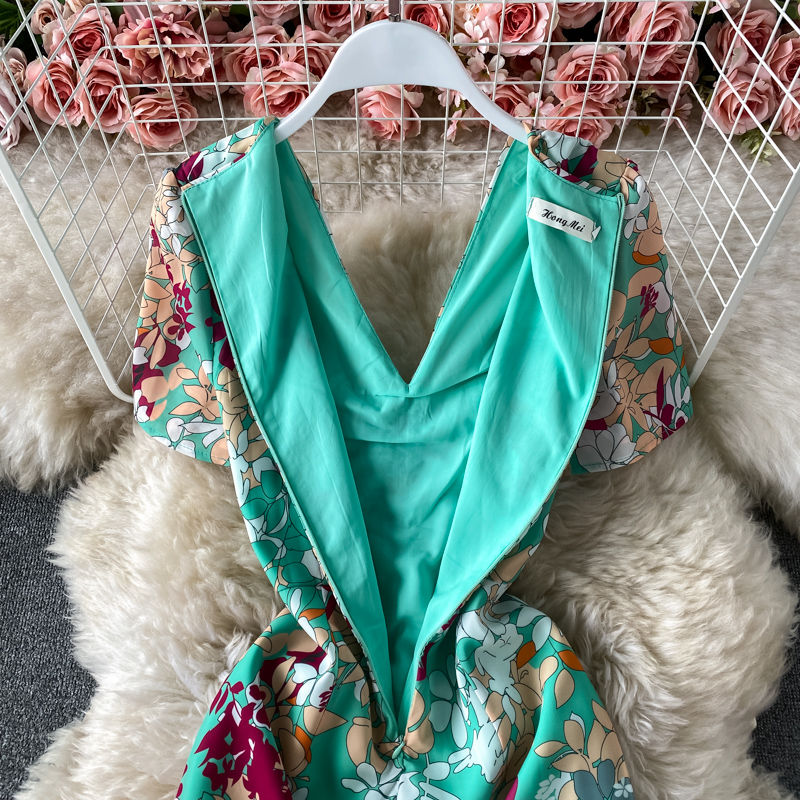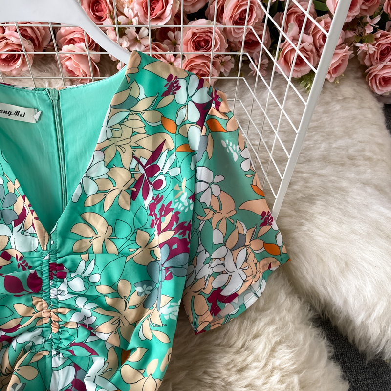 Summer Bohemian Vacation Beach Long Dress Women Sexy V-Neck Short Sleeve High Waist Draped Robe Female New Fashion Vestidos