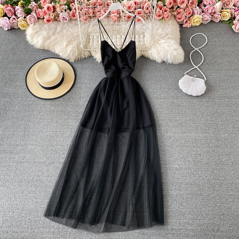 Sexy Mesh Spaghetti Strap Long Dress Summer Women High Waist Open Back Black/White/Red Club Beach Party Maxi Vestidos Female New