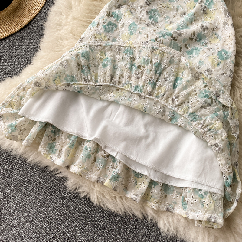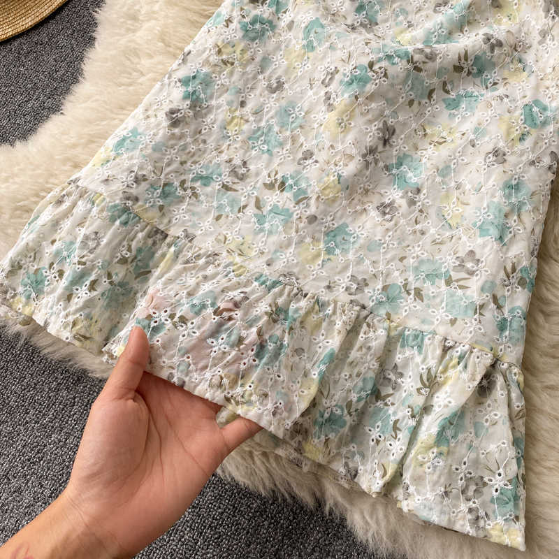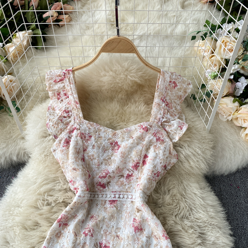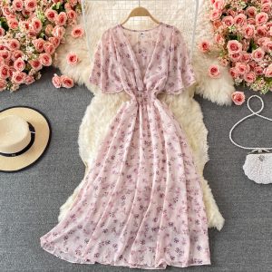 Bohemian Floral Chiffon Midi Dress Women Sexy Slash Neck Ruffle Short Sleeve A-line Printed Vacation Beach Vestidos Robe