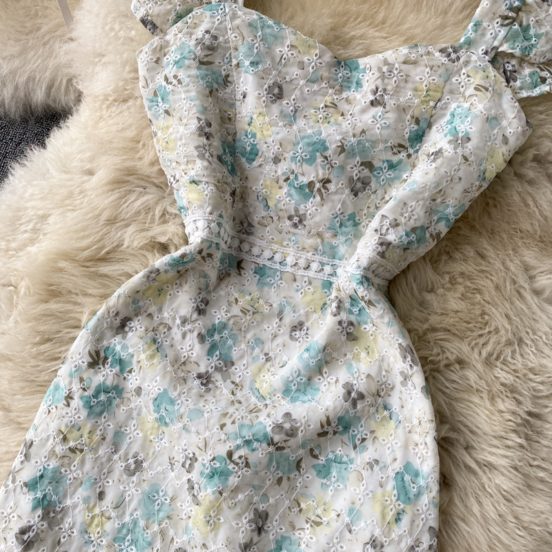 Bohemian Women Embroidery Mini Dress Summer Female Square Collar Spaghetti Strap Vestidos Female Pink/Blue Robe New Fashion