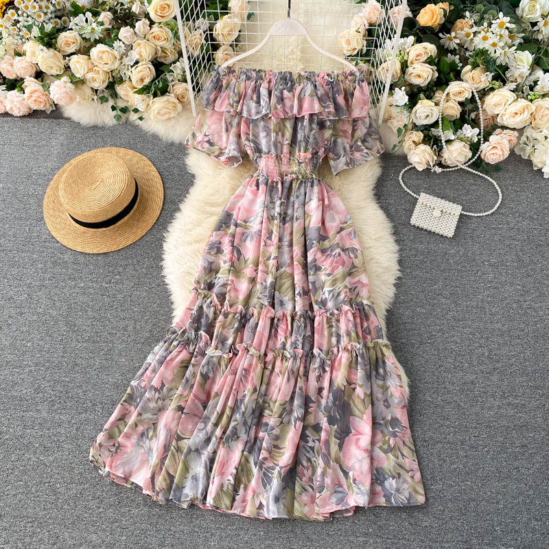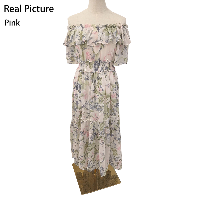 Cheap Dresses, Buy Quality Women’s Clothing Directly from China Suppliers:Bohemian Floral Chiffon Midi Dress Women Sexy Slash Neck Ruffle Short Sleeve A line Printed Vacation Beach Vestidos Robe