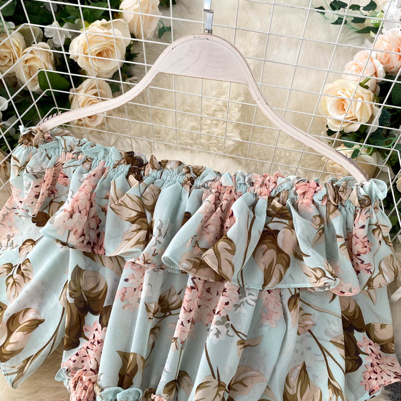 Bohemian Floral Chiffon Midi Dress Women Sexy Slash Neck Ruffle Short Sleeve A-line Printed Vacation Beach Vestidos Robe
