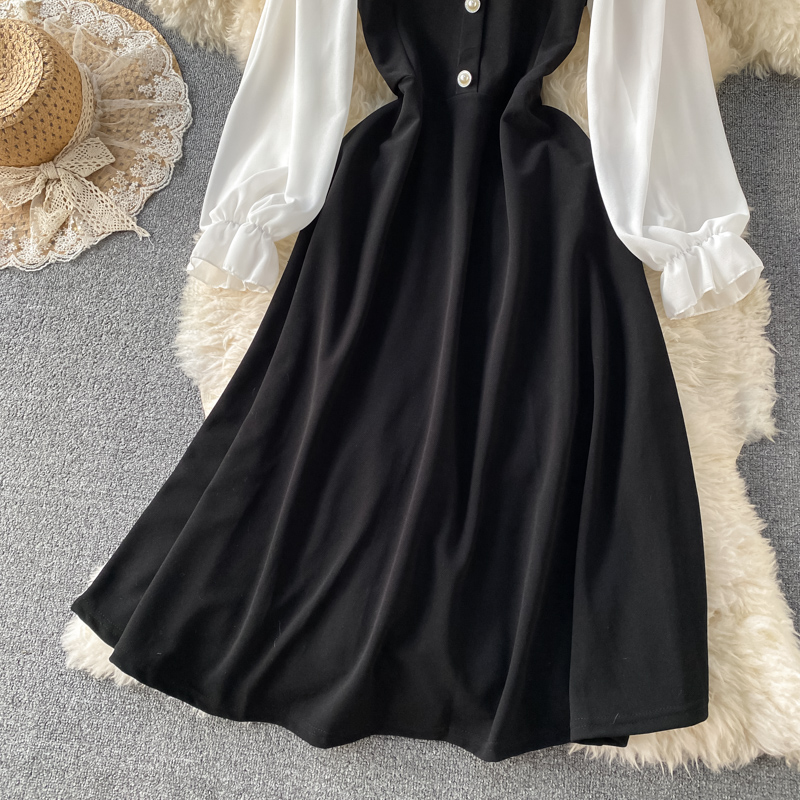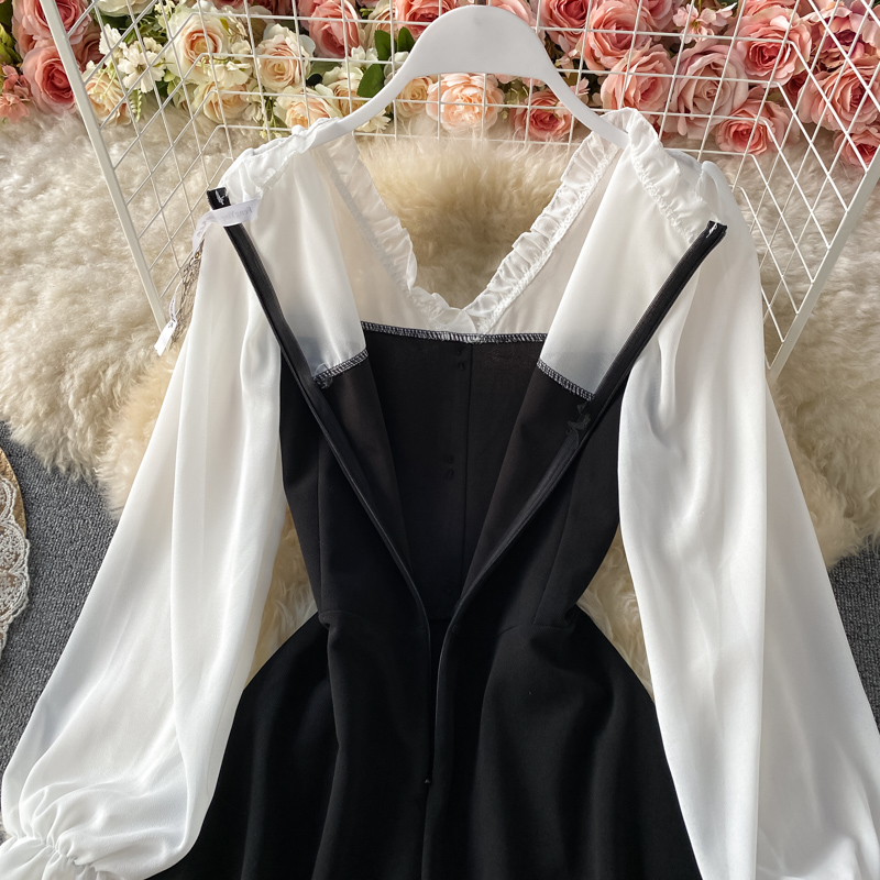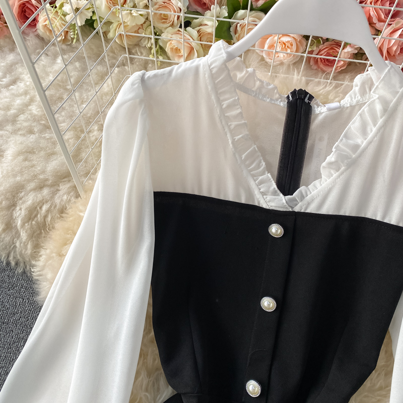 Cheap Dresses, Buy Quality Women’s Clothing Directly from China Suppliers:Spring Autumn Women Black Patchwork Mesh Dress Vintage New Fashion Flare Long Sleeve Ruffle Single Breasted Robe Female