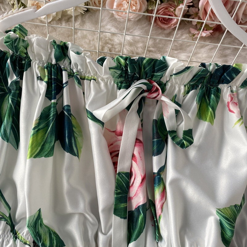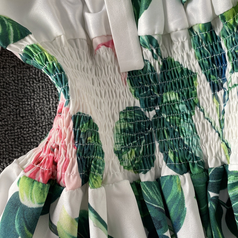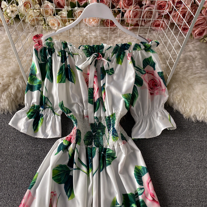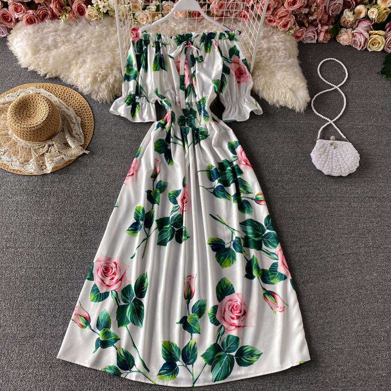 Summer Women Sexy Beach Long Dress Elegant Slash Neck Ruffle Short Flare Sleeve High Waist Big Swing Vestidos New Fashion