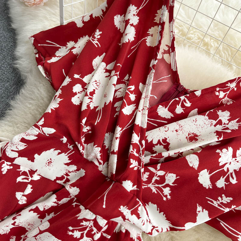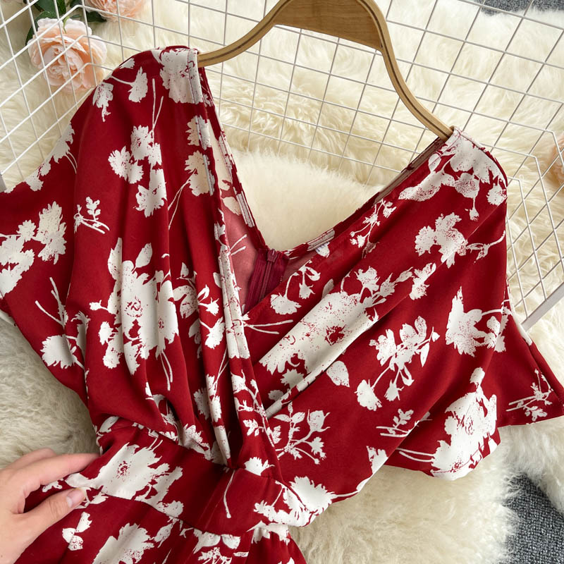 Summer Vintage Chiffon Rompers Elegant V-neck Short Sleeve Black/Red/White Polka Dot Playsuits For Female Sweet Jumpsuits