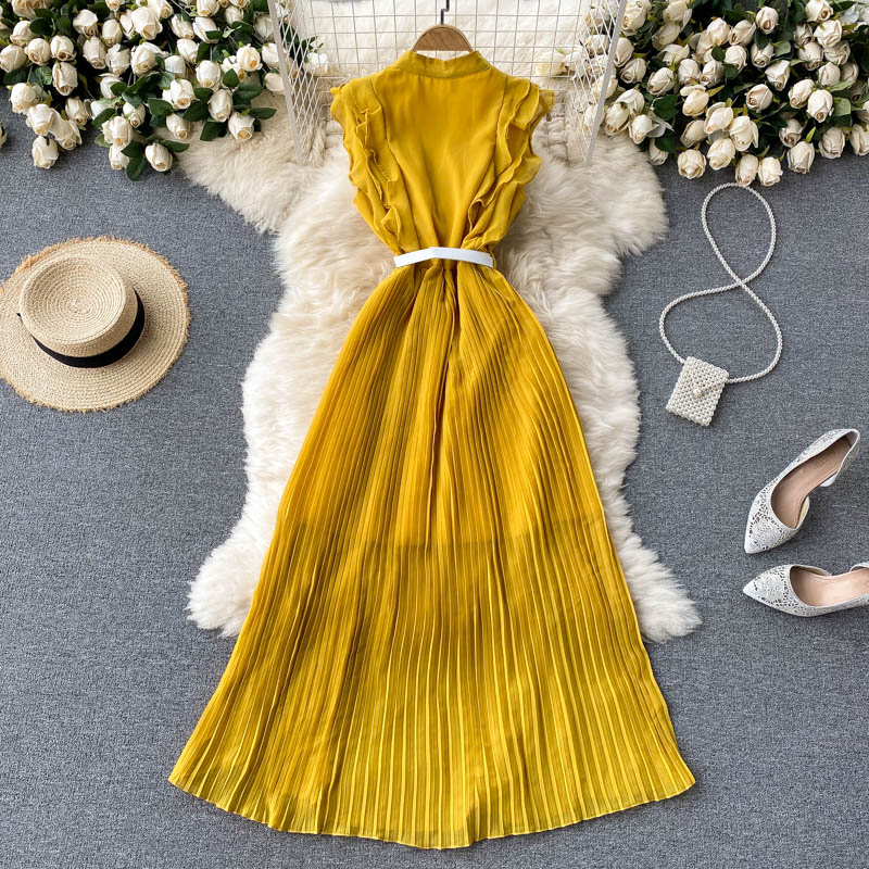 Cheap Dresses, Buy Quality Women’s Clothing Directly from China Suppliers:Summer Beach Women Chiffon Pleated Long Dress Vintage Vacation Purple/Red Ruffle Single Breasted Draped Vestidos With Sashes New
