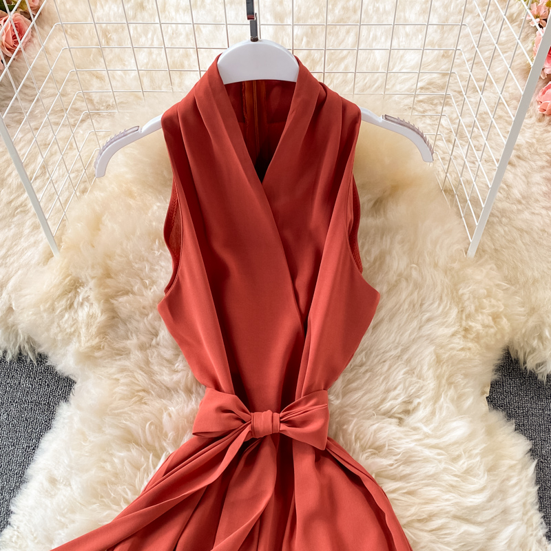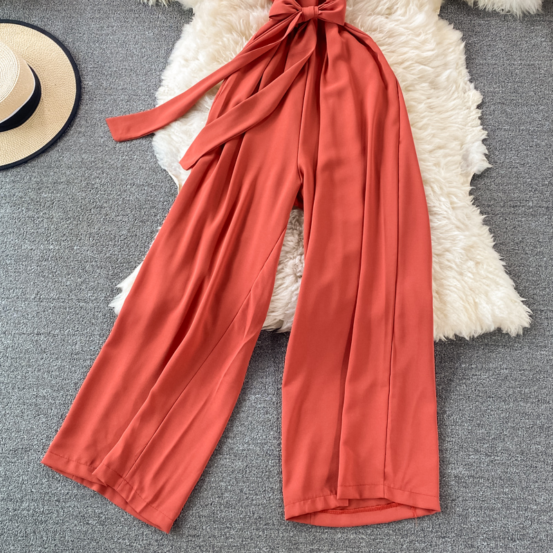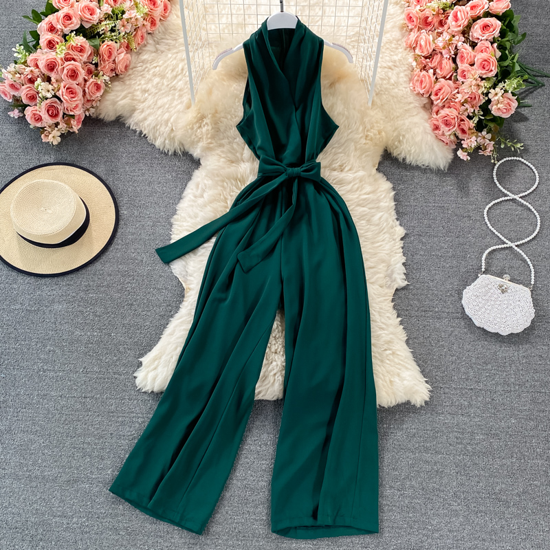 Summer Women Sleeveless High Waist Wide Leg Romper Vintage V-Neck Loose Green/Blue/Red Jumpsuit Casual Female Playsuits New