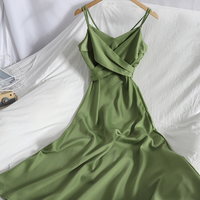 Sexy Bandage Spaghetti Strap Midi Dress Women Elegant Satin Twist Cross Green/Red Party Vestidos Female Summer New Fashion