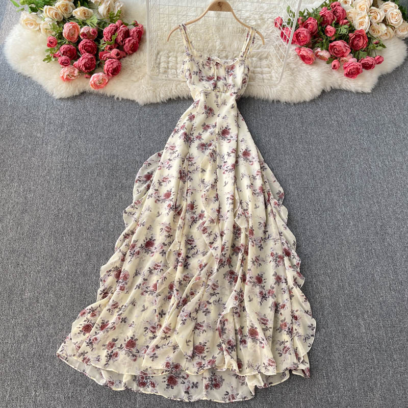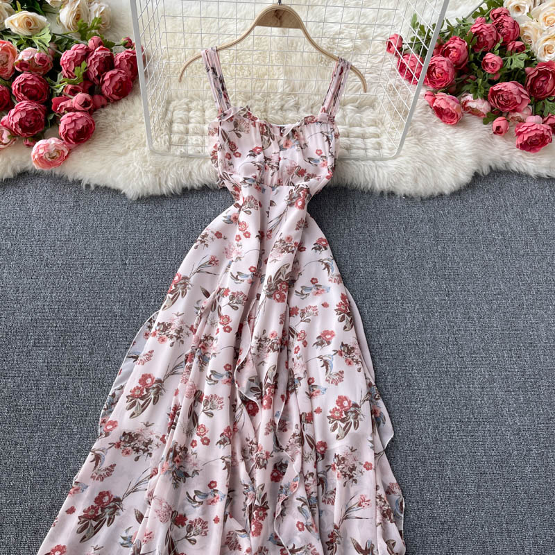 Cheap Dresses, Buy Quality Women’s Clothing Directly from China Suppliers:Summer Beach Floral Printed Ruffle Chiffon Long Dress Women Sexy Slash Neck Spaghetti Strap Vestidos Vacation Party Robe