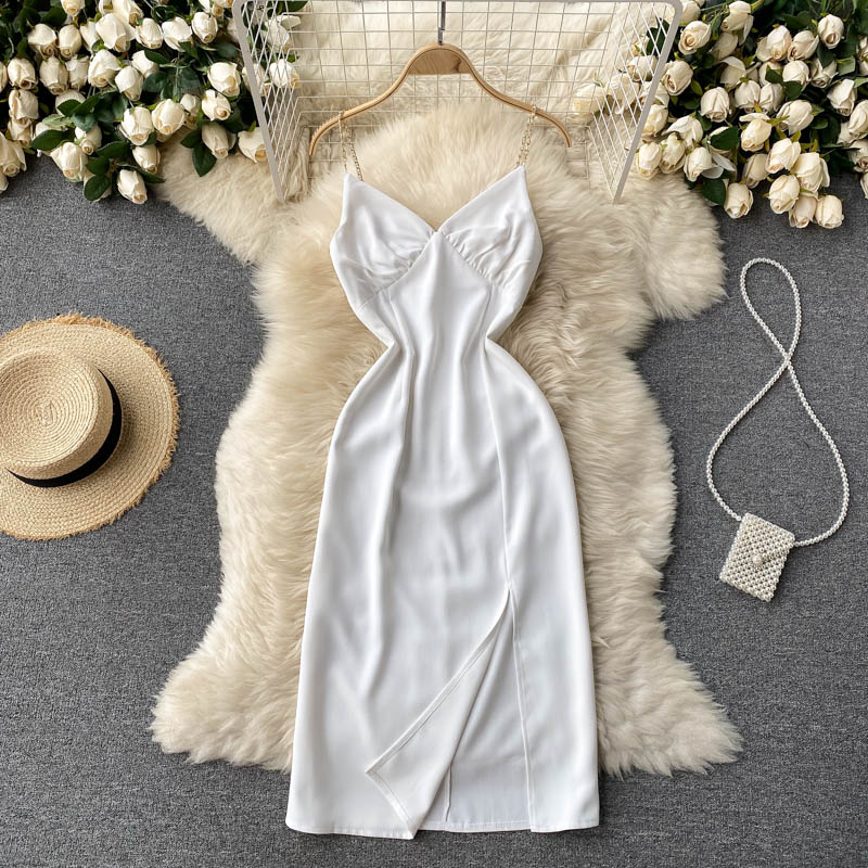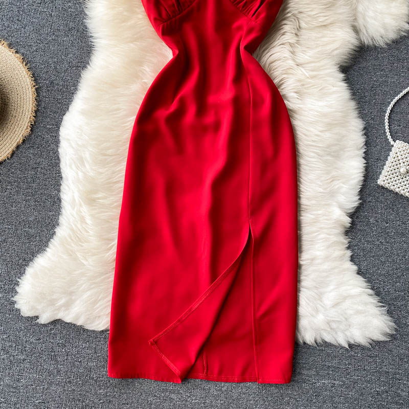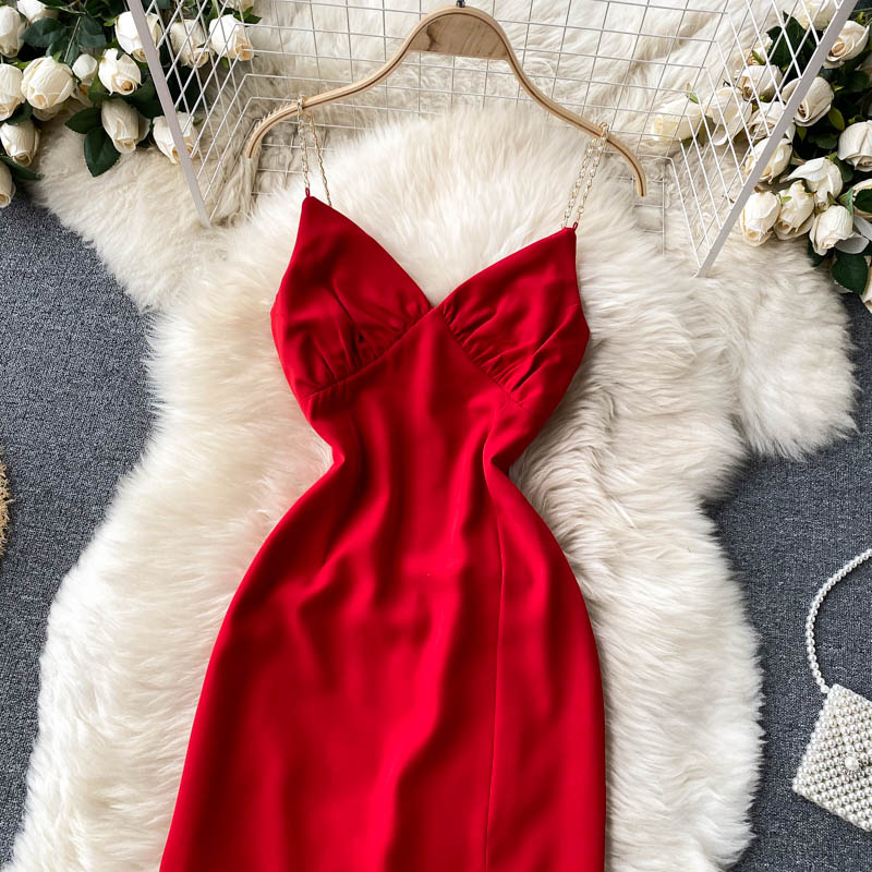 Sexy Women Spaghetti Strap Dress Red/White/Yellow High Waist Camisole Party Vestidos Female Summer Elegant Robe Ladies New