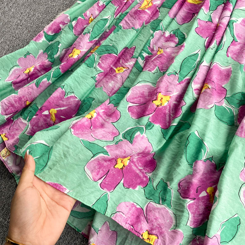 Women Black/Blue/Green Floral Printed Midi Dress Bohemian Elegant Round Neck Short Puff Sleeve Vacation Beach Vestidos Summer