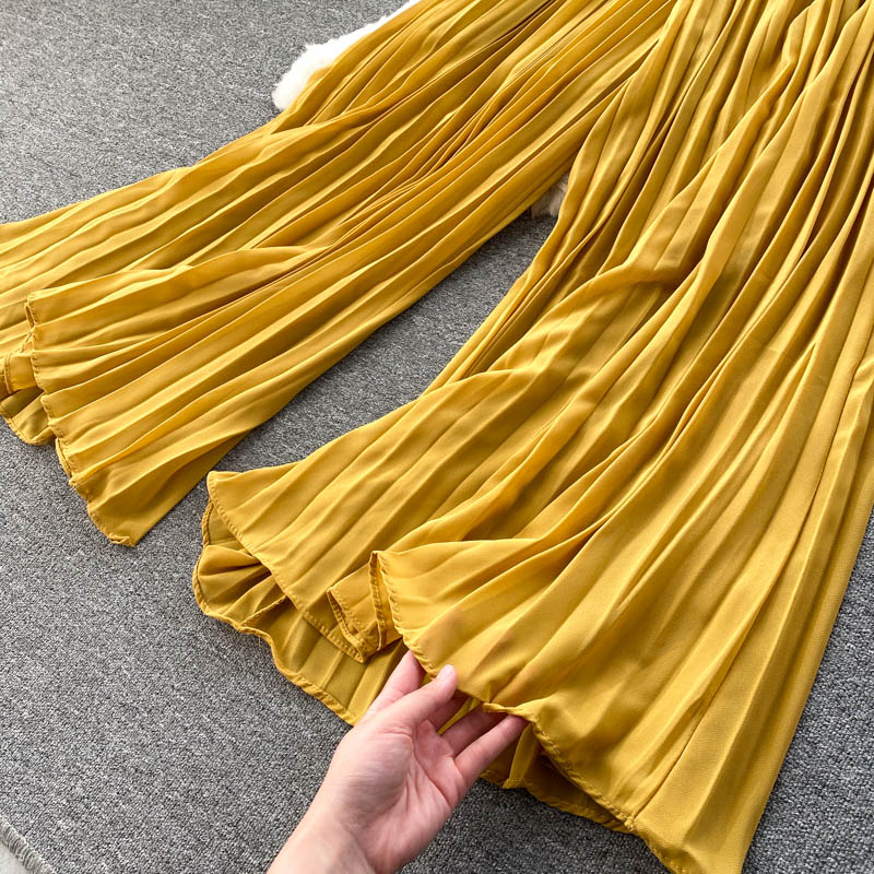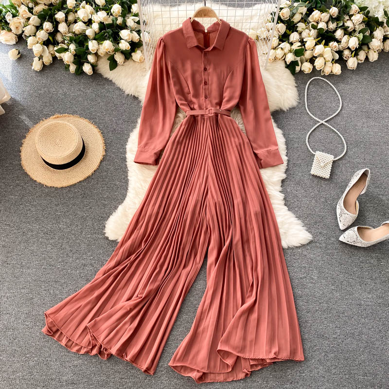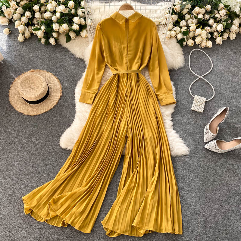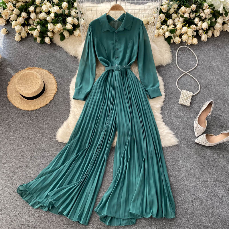 Green/Purple/Yellow Draped Romper Women Vintage Turn-Down Collar Single Breasted High Waist Folds Chiffon Jumpsuits Female New