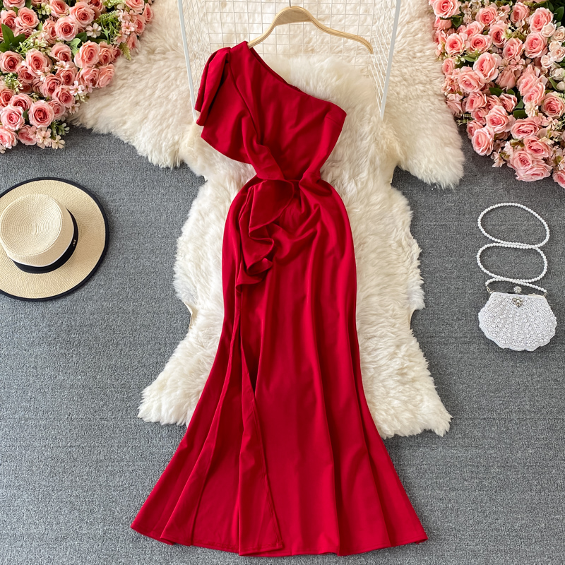 Cheap Dresses, Buy Quality Women’s Clothing Directly from China Suppliers:Green/Red/Black Party Long Dress Women Sexy One Shoulder Diagonal Collar High Waist Open Back Robe Female Sexy Vestidos Summer