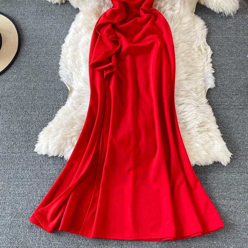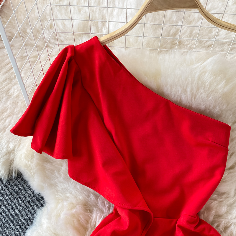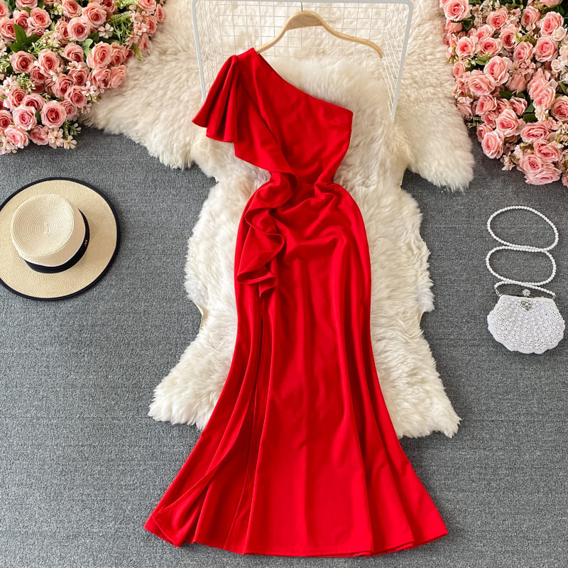 Green/Red/Black Party Long Dress Women Sexy One Shoulder Diagonal Collar High Waist Open Back Robe Female Sexy Vestidos Summer