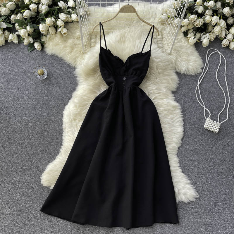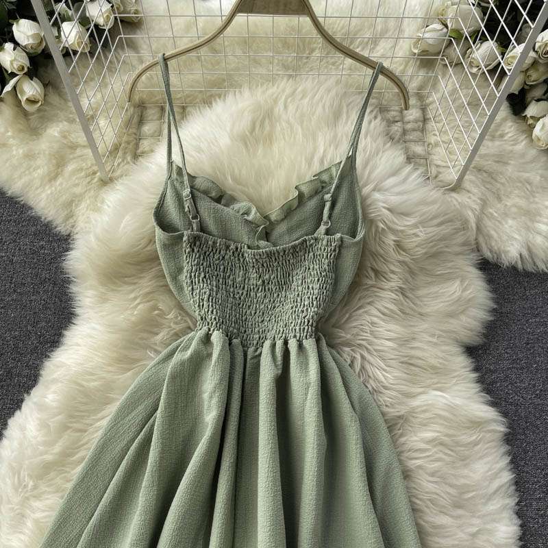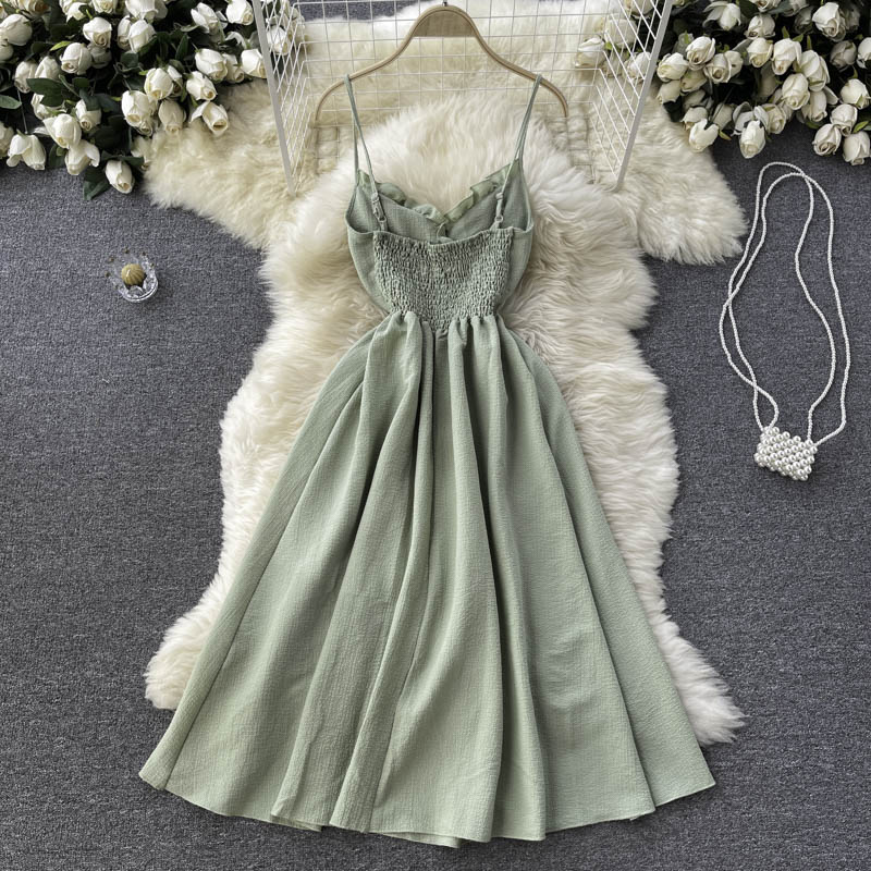 Black/Green/Blue Sexy Spaghetti Strap Dress Women Elegant V-Neck High Waist Sleeveless Strapless Vestidos Female Summer New
