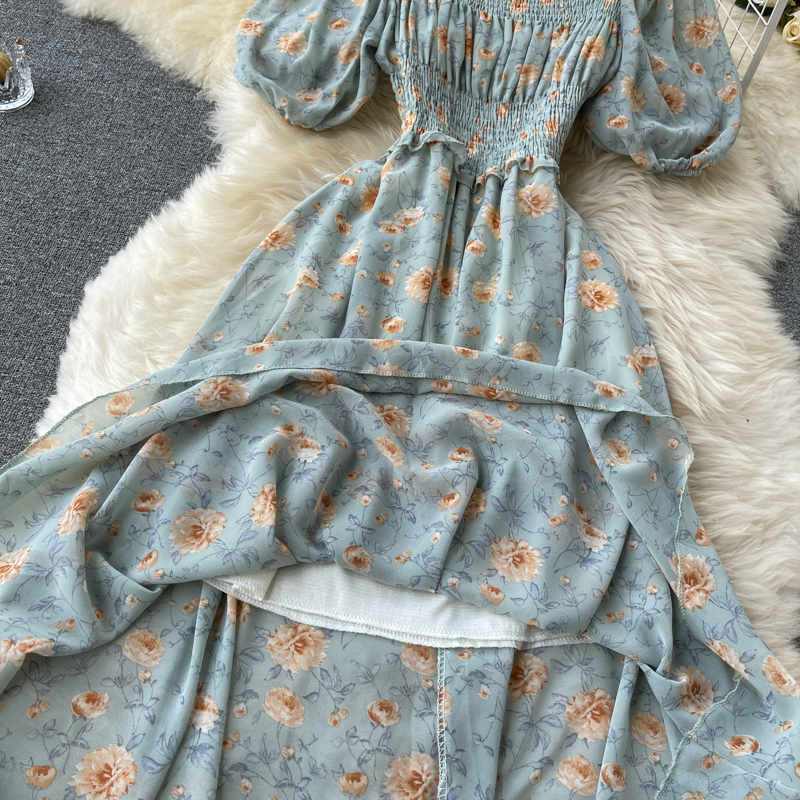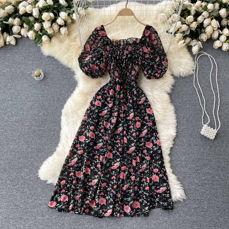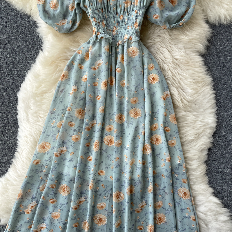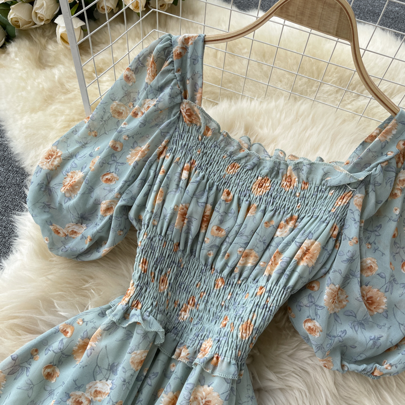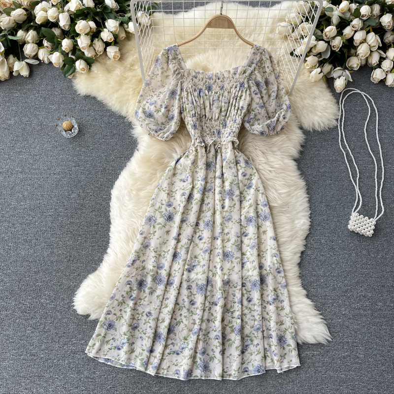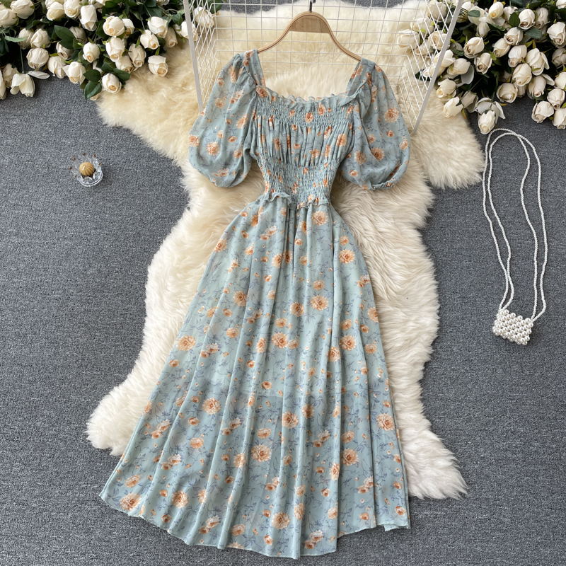 Cheap Dresses, Buy Quality Women’s Clothing Directly from China Suppliers:Summer Women Floral Chiffon Dress Beach Vacation Party Vestidos Female Elegant Square Collar Short Puff Sleeve High Waist Robe