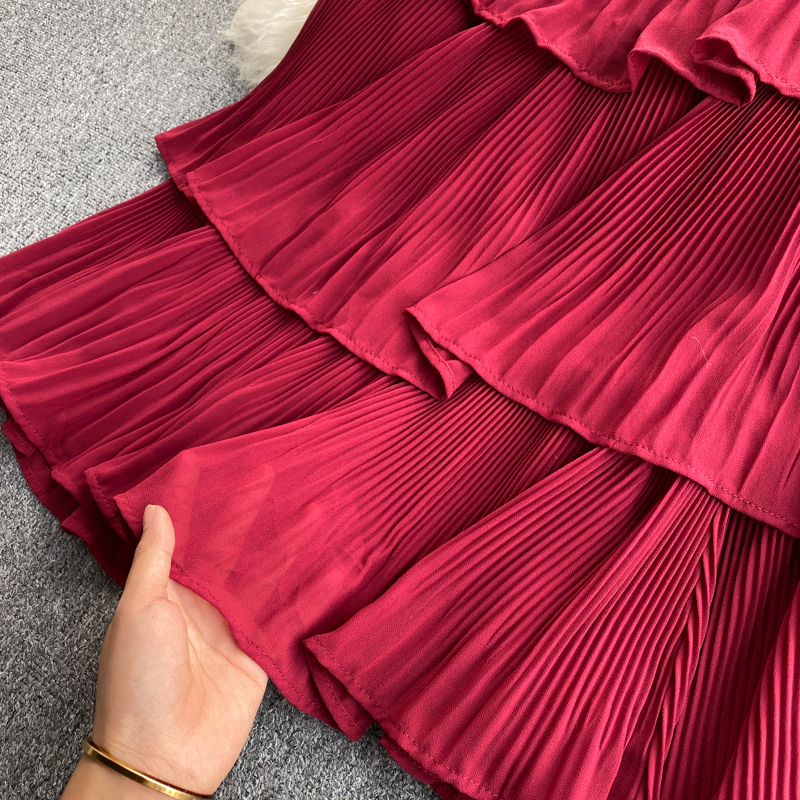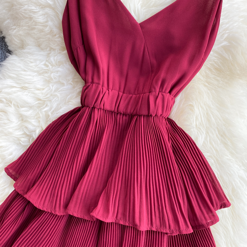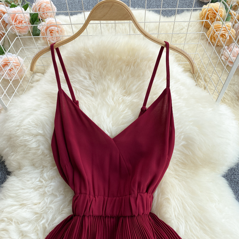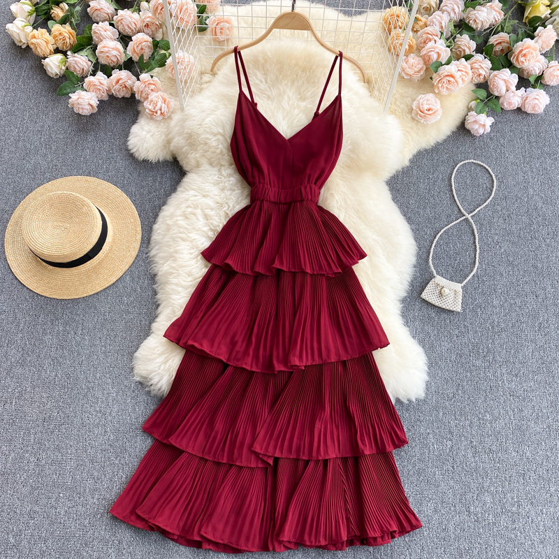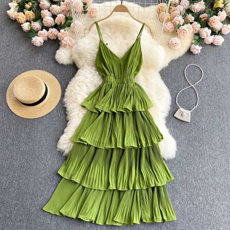 Summer Women Draped Ruffle Spaghetti Strap Dress Sexy Vacation Beach Vestidos Female Elegant High Waist Slim Midi Robe New
