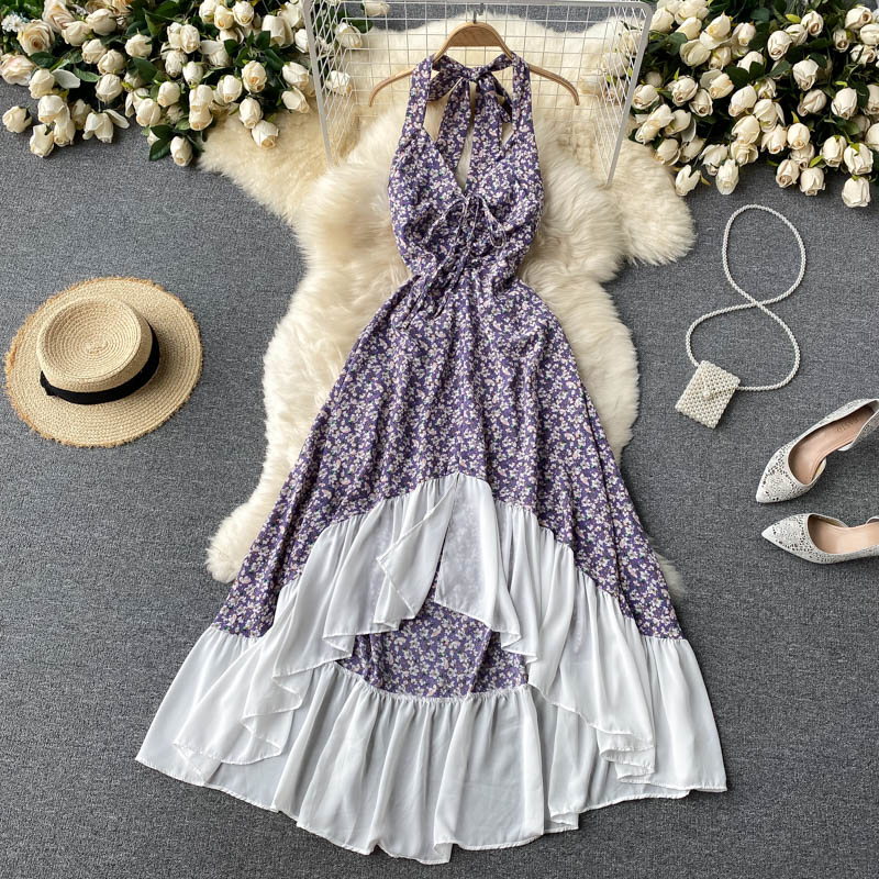Cheap Dresses, Buy Quality Women’s Clothing Directly from China Suppliers:Summer Halter Irregular Spaghetti Strap Long Dress Women Sexy Vacation Beach Printed Ruffle Robe Female Casual Vestidos New