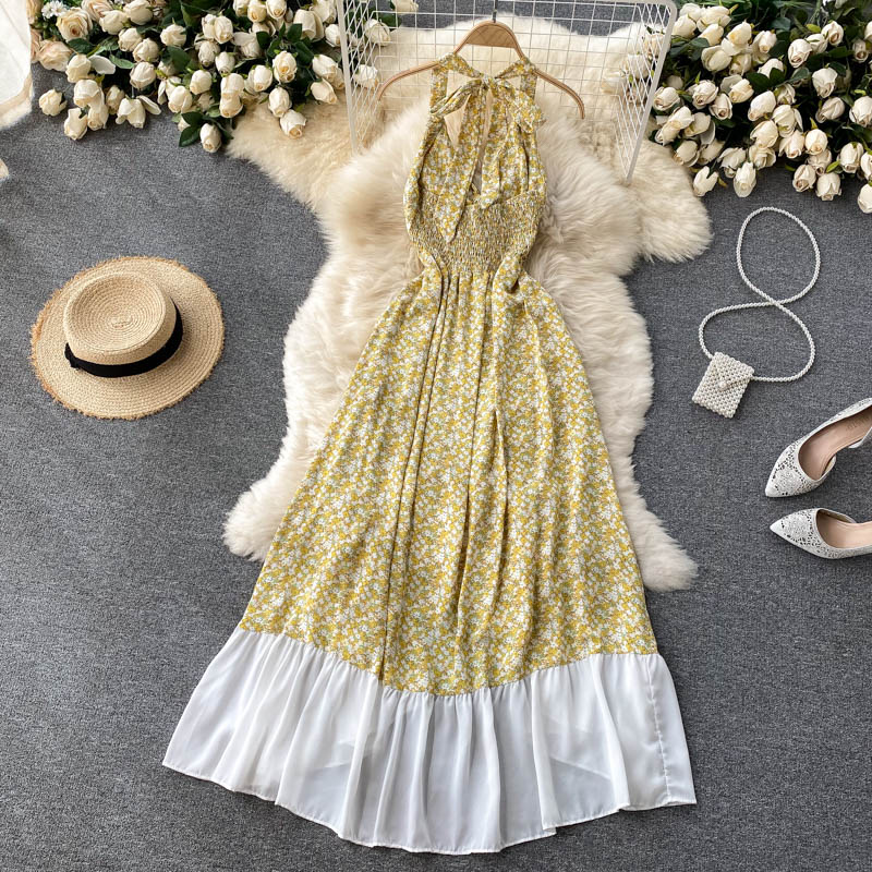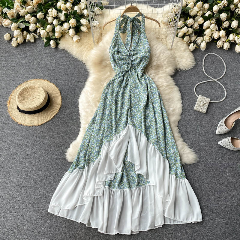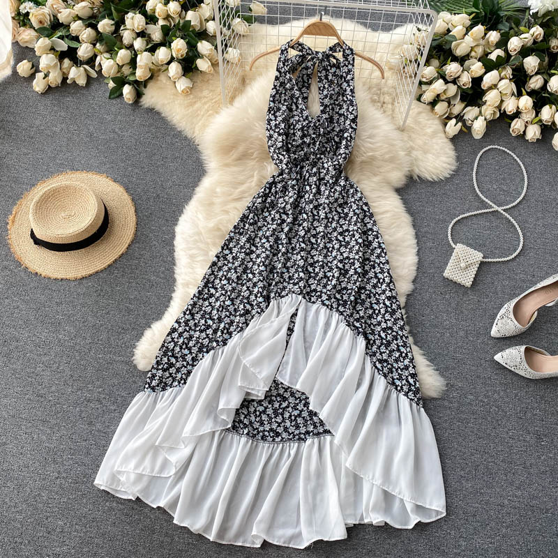 Summer Halter Irregular Spaghetti Strap Long Dress Women Sexy Vacation Beach Printed Ruffle Robe Female Casual Vestidos New