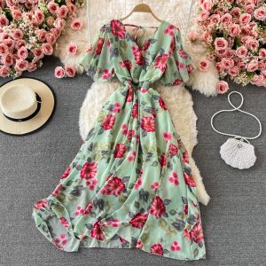 Autumn Women Pleated Midi Dress Vintage Red/Purple/Green Draped Party Vestidos Elegant Casual High Waist Long Sleeve Robe