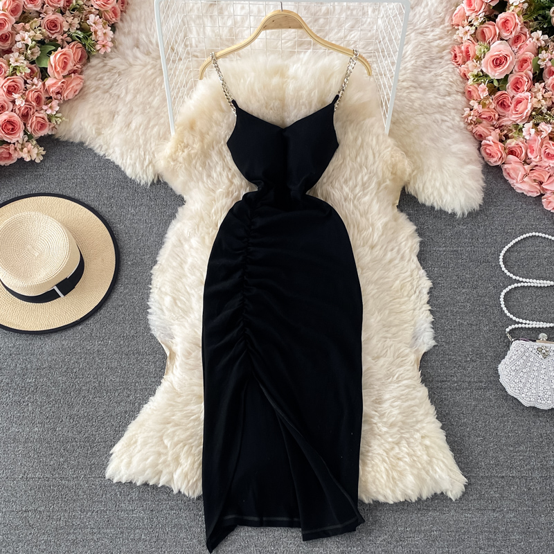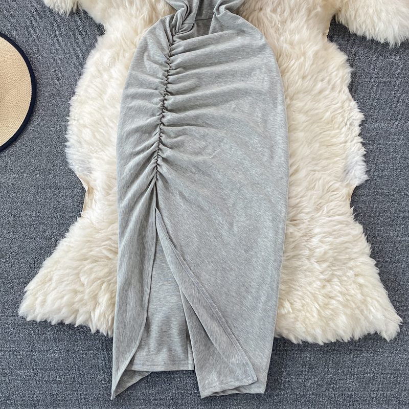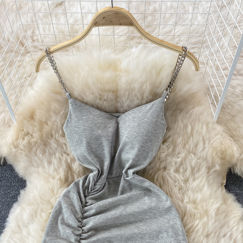 Women Black/Gray Draped Spaghetti Strap Dress Sexy Summer Club Party High Waist Open Back Bodycon Vestidos Female Casual Robe