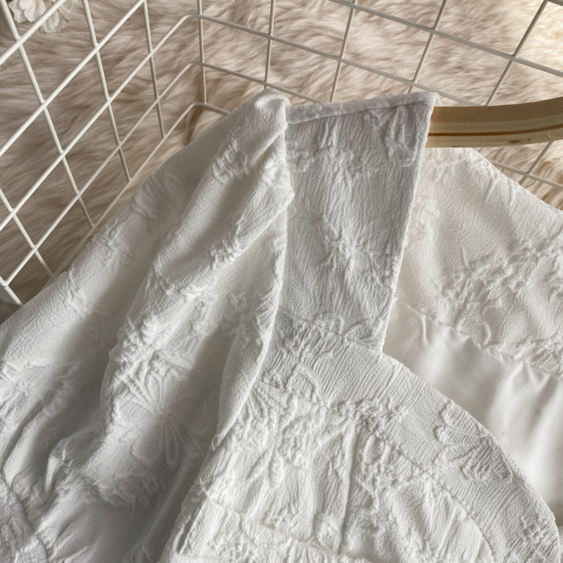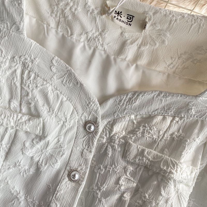 Women White/Black Jacquard 2pcs Set Summer Vintage Square Collar Single Breasted Short Tops High Waist A-Line Skirt Suit Female