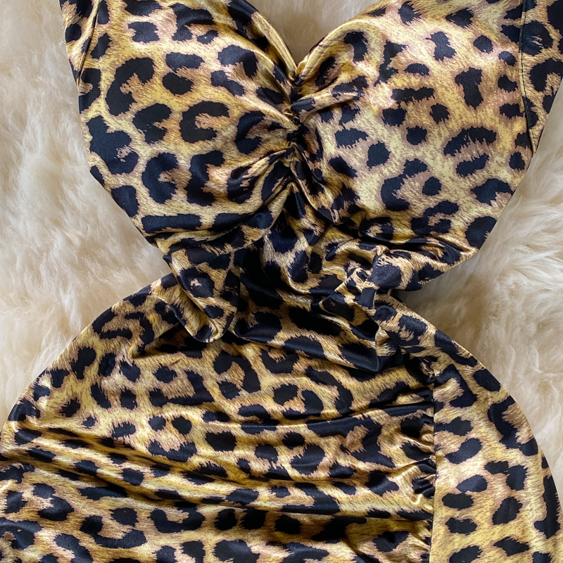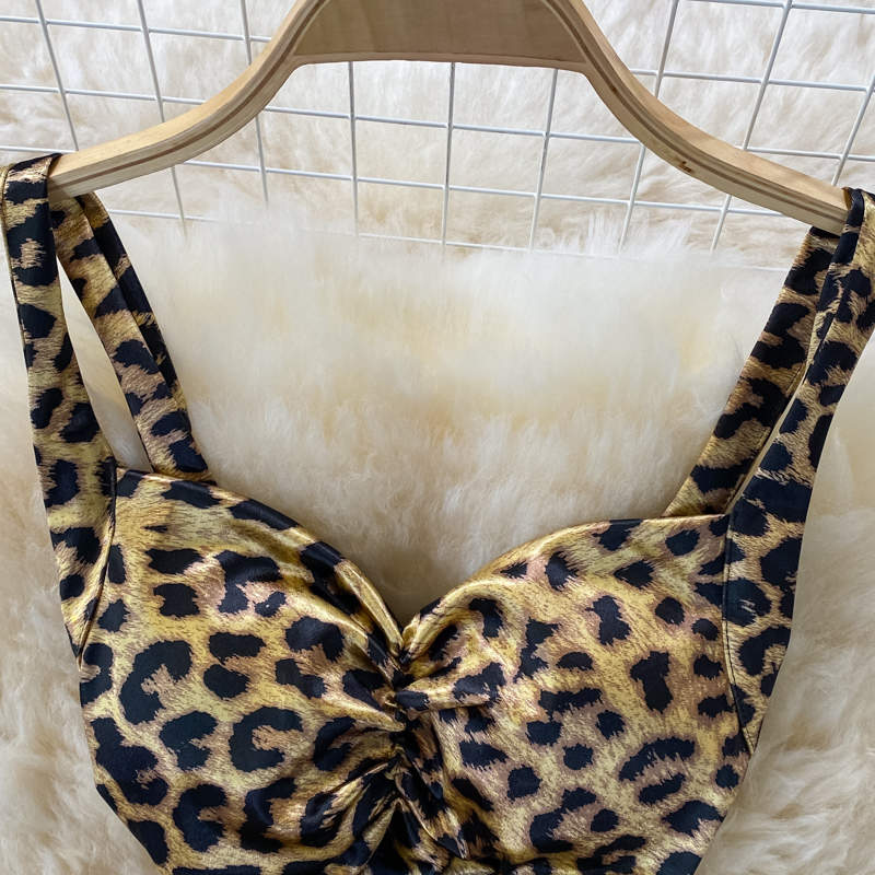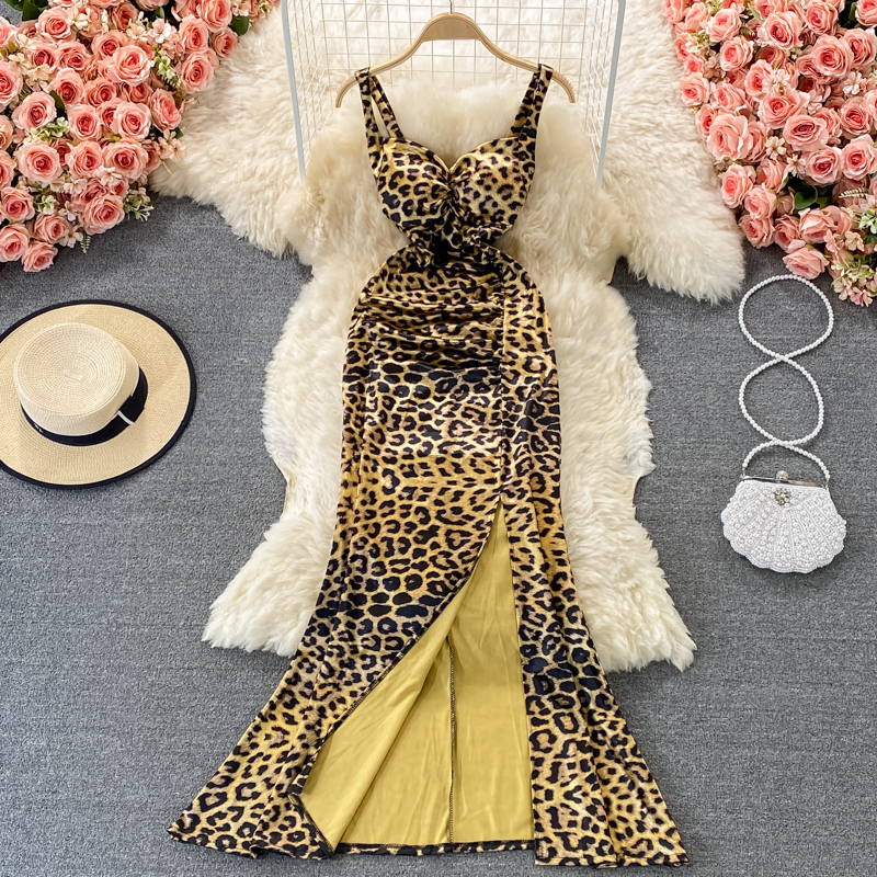 Sexy Leopard Spaghetti Strap Long Dress Summer Women Sleeveless Strapless High Waist Split Bodycon Vestidos Female Draped Robe