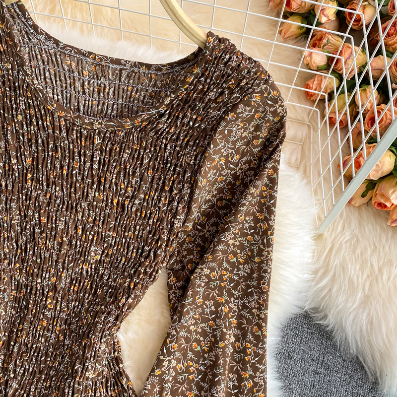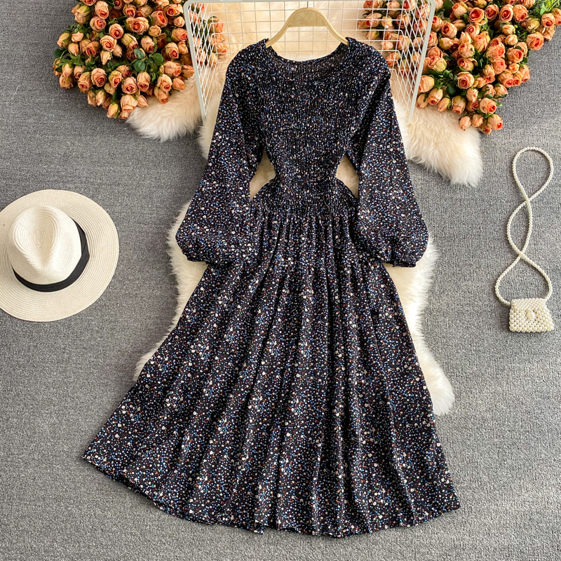 Cheap Dresses, Buy Quality Women’s Clothing Directly from China Suppliers:Black/Khaki Draped Midi Dress Women Vintage O Neck Puff Long Sleeve High Waist A Line Big Swing Vestidos Female Spring Autumn