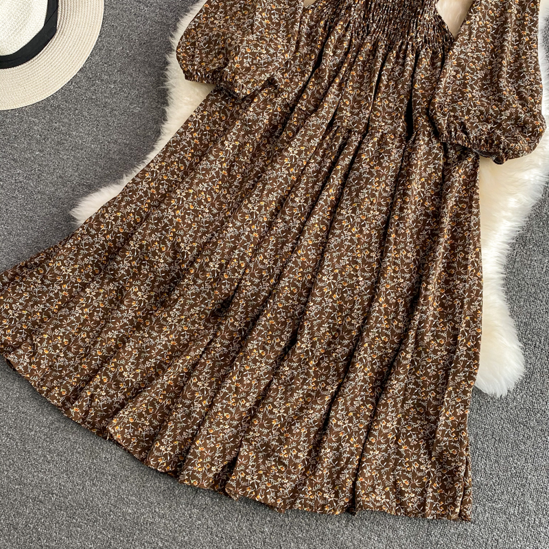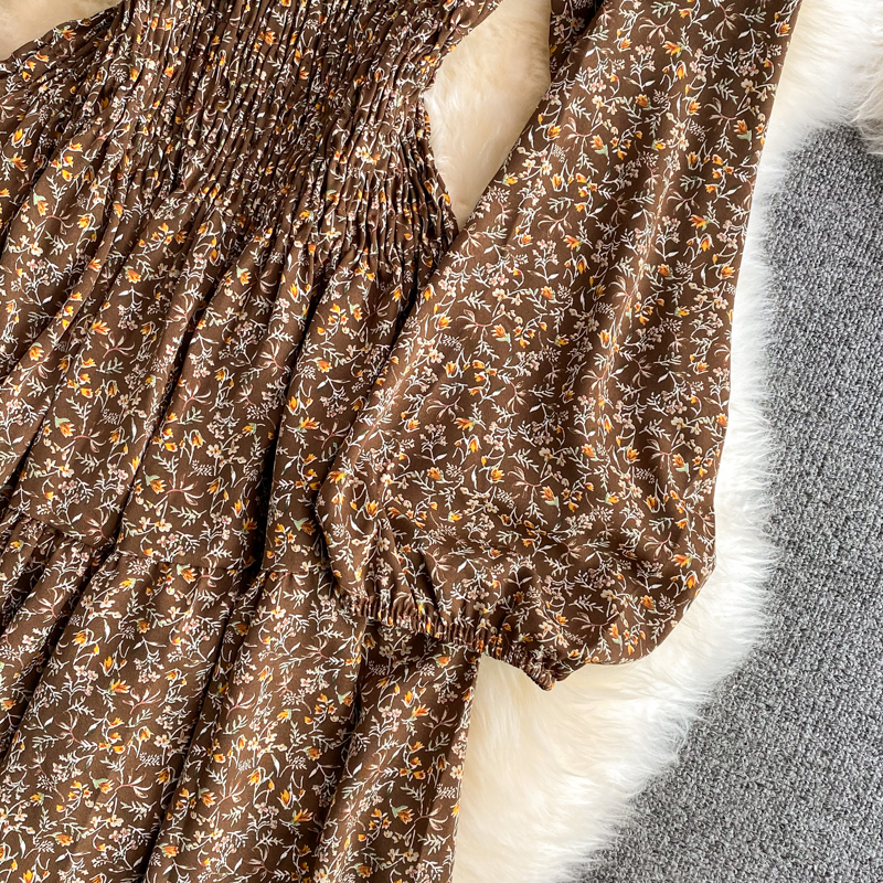 Black/Khaki Draped Midi Dress Women Vintage O-Neck Puff Long Sleeve High Waist A-Line Big Swing Vestidos Female Spring Autumn