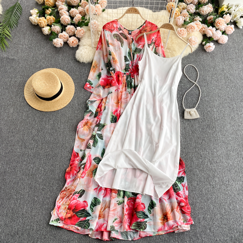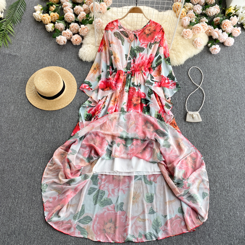 Cheap Dresses, Buy Quality Women’s Clothing Directly from China Suppliers:Red Floral Printed Long Dress Women Bohemian O Neck Long Sleeve High Waist Ruffle Vestido Vacation Beach Robe Spring Autumn