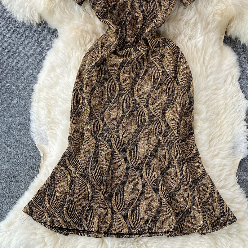 Sexy Striped Party Mini Dress Women Khaki/Gray V-Neck Short Sleeve High Waist Mermaid Vestidos Female Summer New Fashion