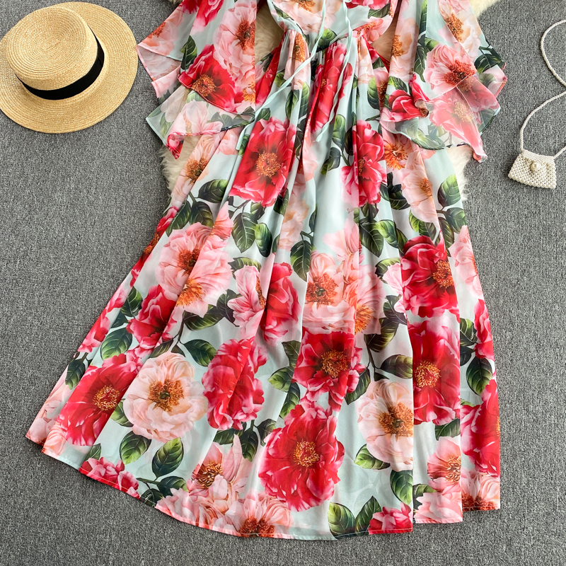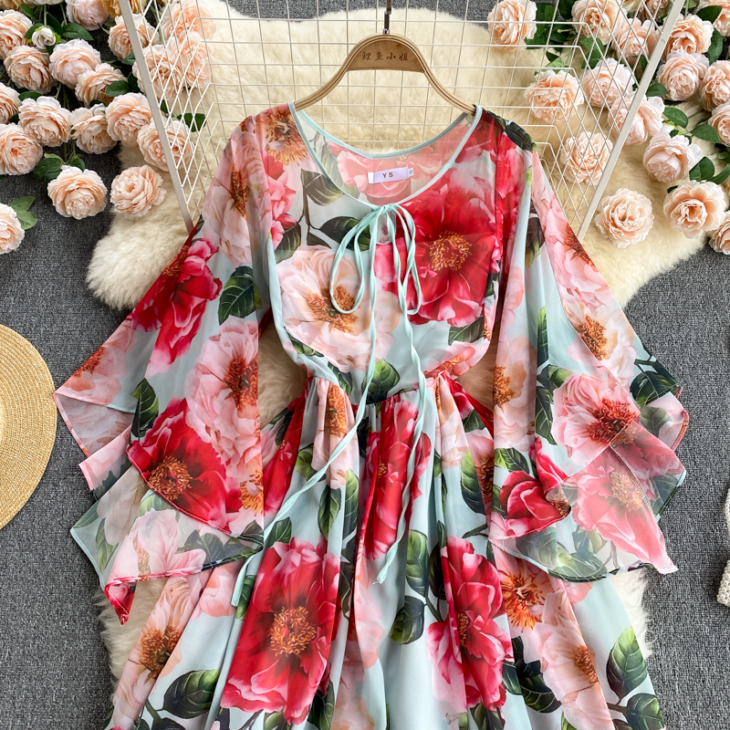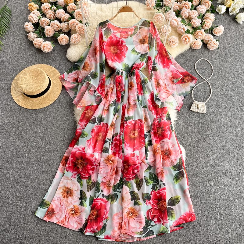 Summer Bohemian Floral Printed Long Dress Women Elegant O-Neck Flare Sleeve Casual Maxi Vestidos Female Vacation Beach Robe