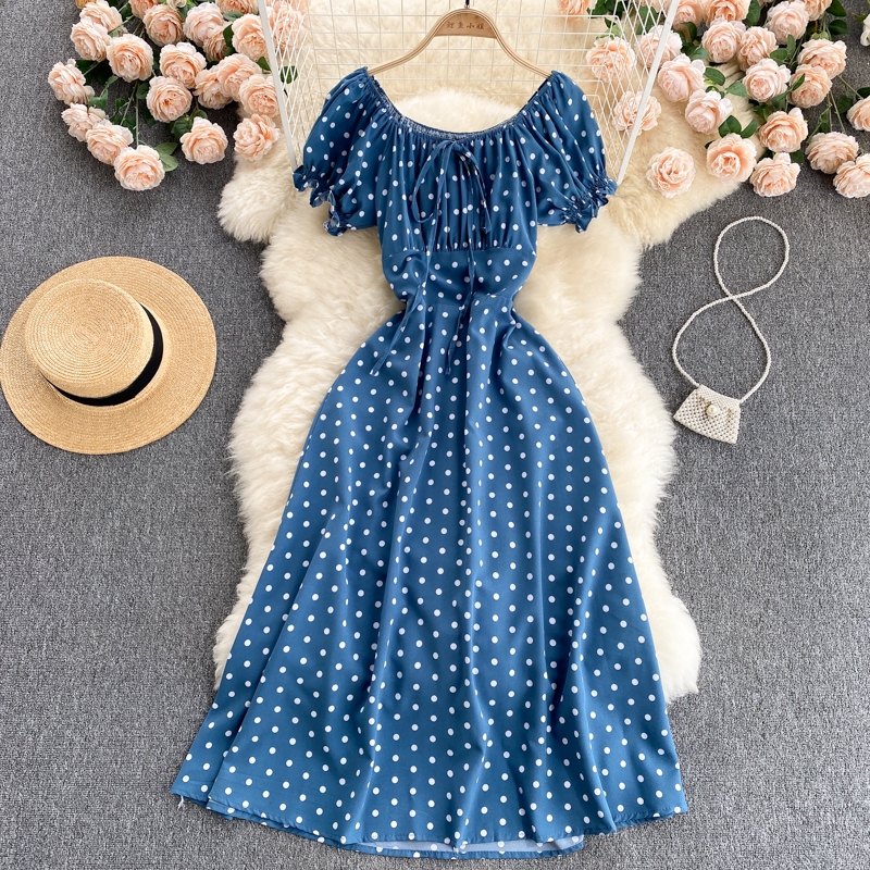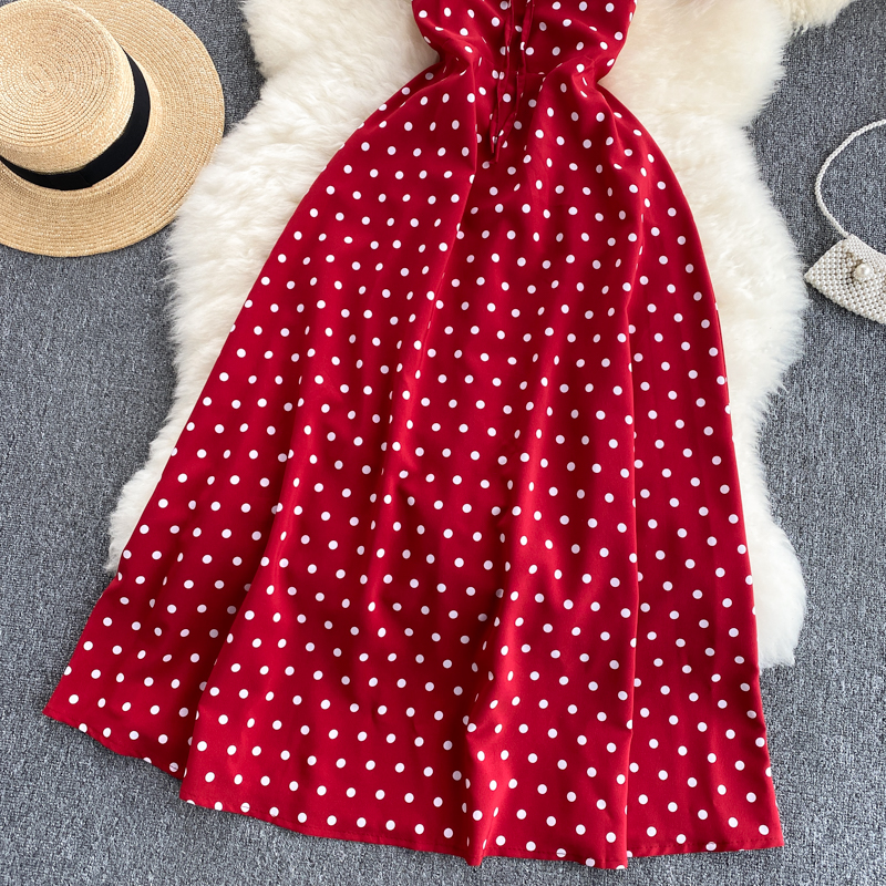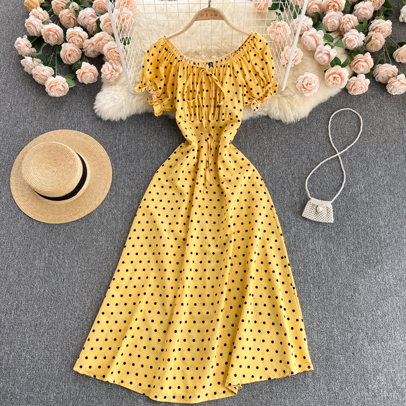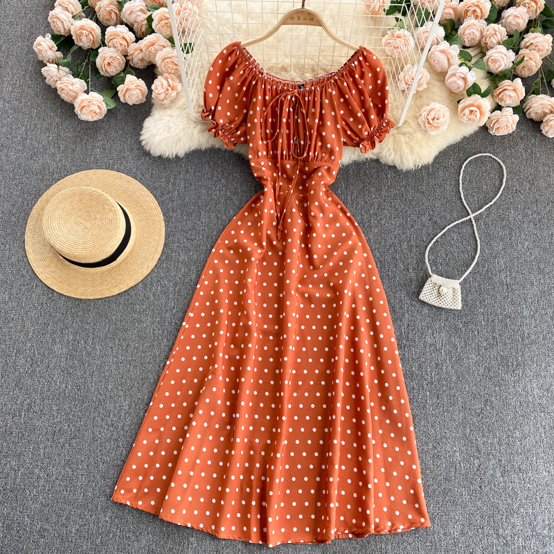Cheap Dresses, Buy Quality Women’s Clothing Directly from China Suppliers:Sexy Polka Dot Midi Dress Women Summer Red/Orange/Black Square Collar Short Sleeve High Waist Slim Vestidos Female Vacation Robe