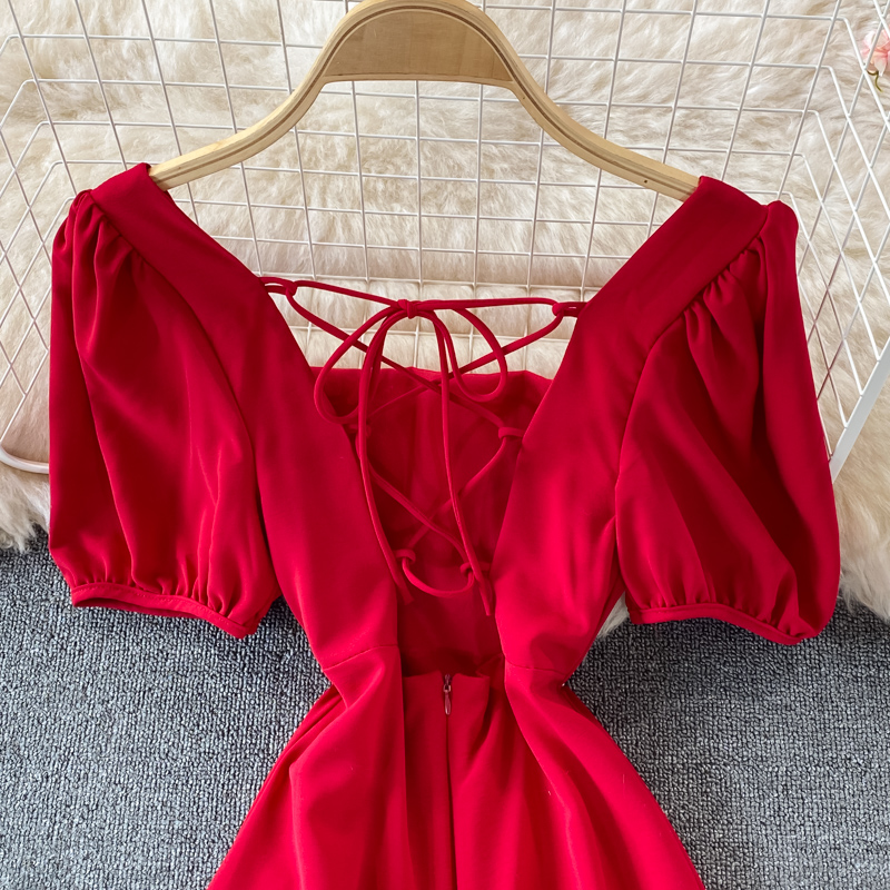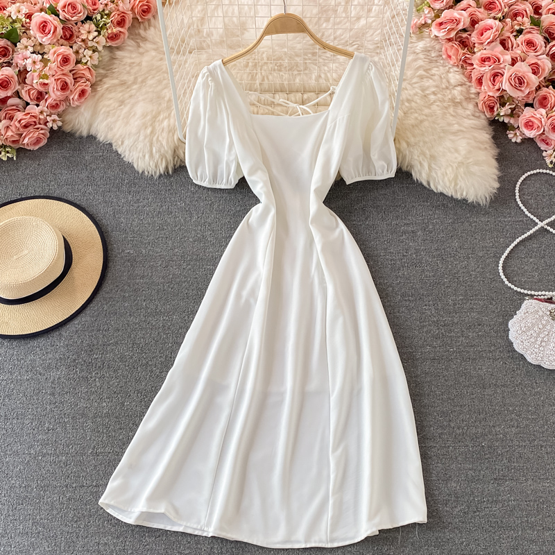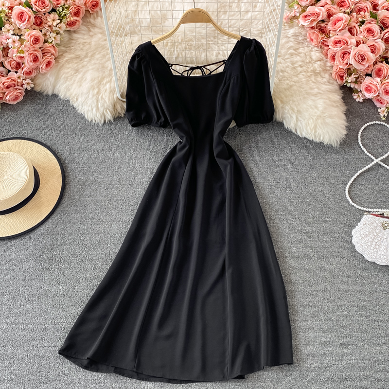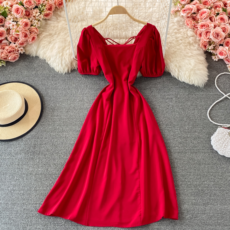 Cheap Dresses, Buy Quality Women’s Clothing Directly from China Suppliers:Black/Red/White Square Collar Vintage Dress Women Elegant Short Sleeve High Waist A Line Casual Vestidos Female Summer New