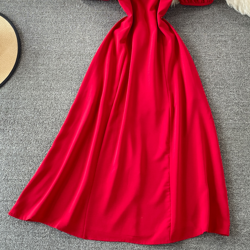 Black/Red/White Square Collar Vintage Dress Women Elegant Short Sleeve High Waist A-Line Casual Vestidos Female Summer New