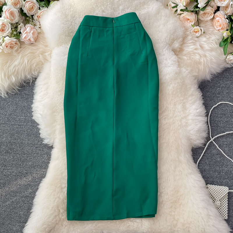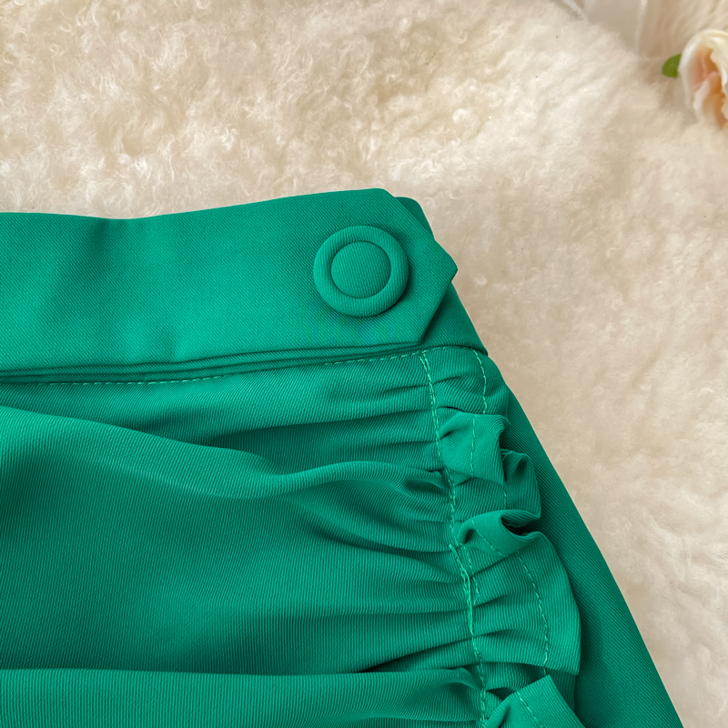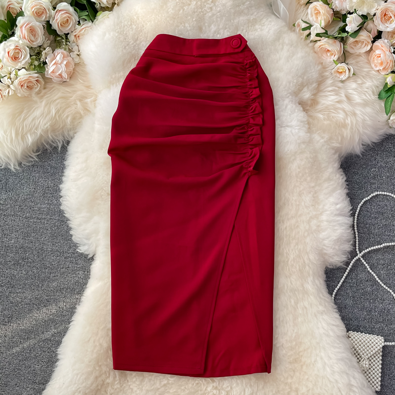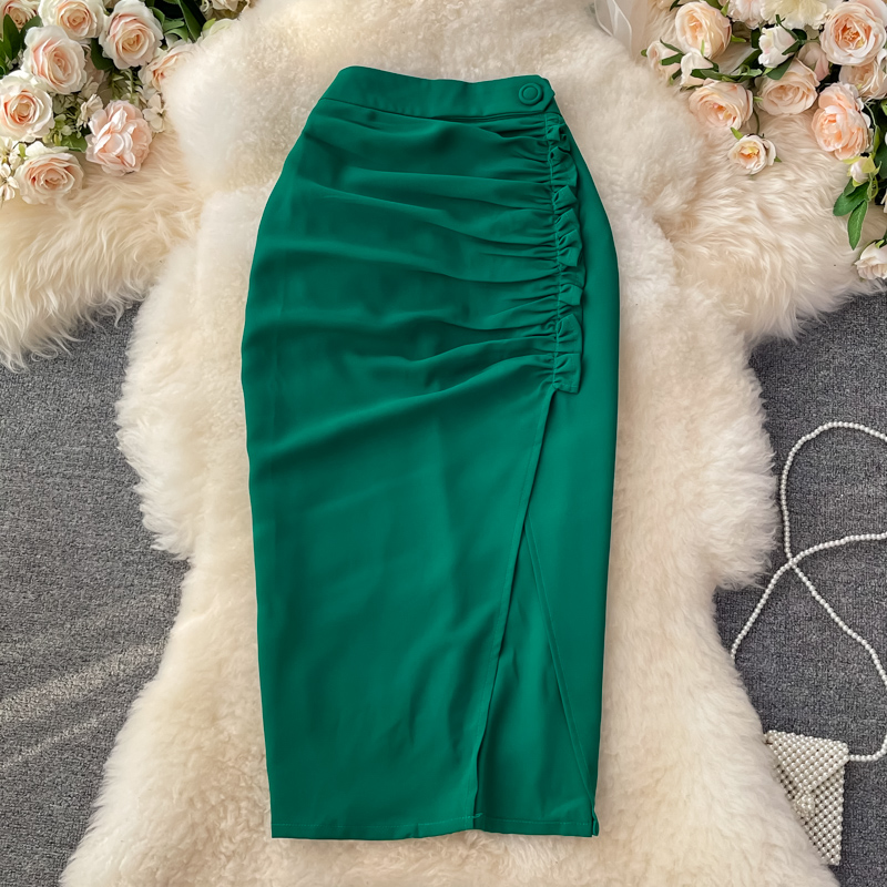 Green/Black/Red Draped Knitted Skirt Women High Waist Pleated Split Bodycon Saias Female Elegant Faldas Summer New Fashion