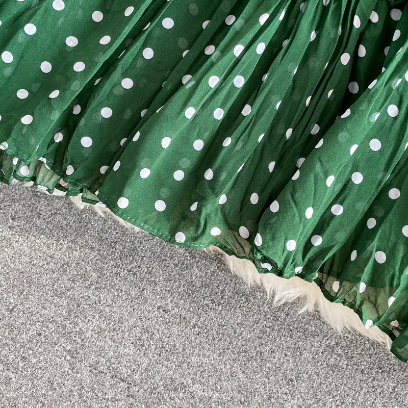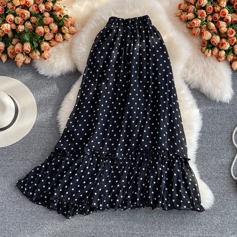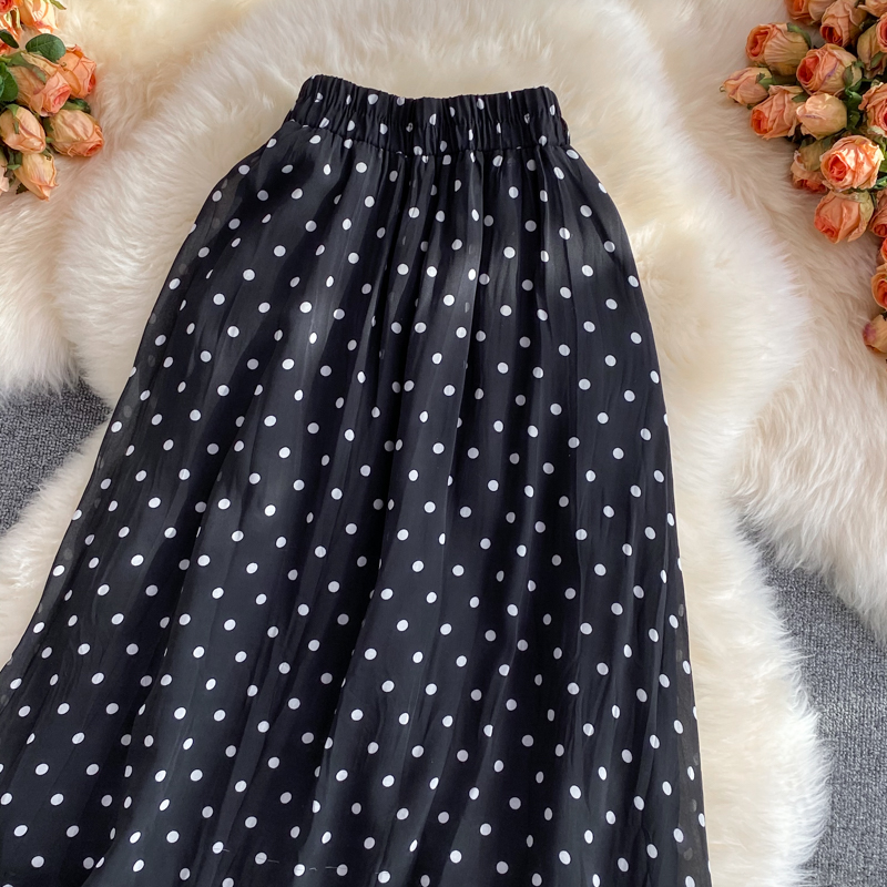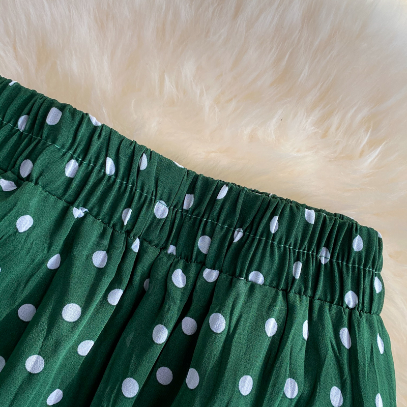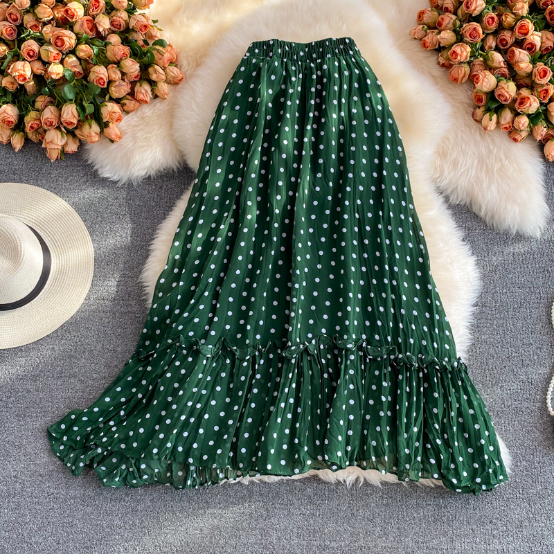 Green/Black Polka Dot Chiffon Skirt Women Summer Elastic High Waist A-Line Ruffle Faldas Casual Female Saias New Fashion