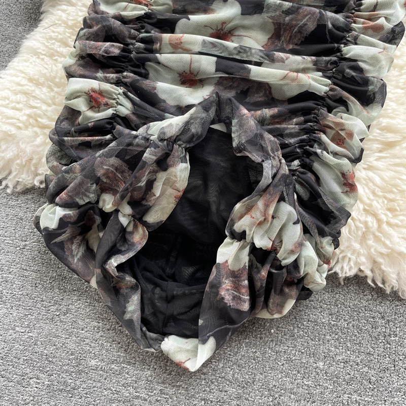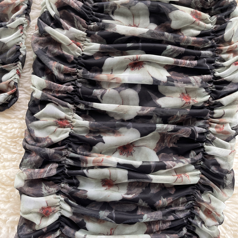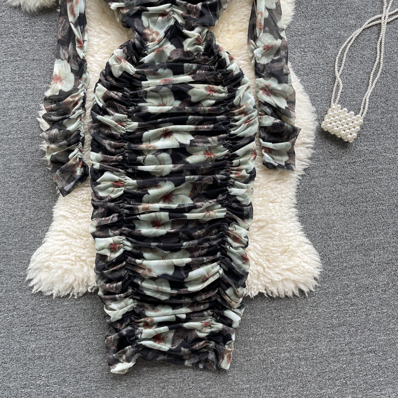 Vintage Black Draped Midi Dress Women Square Collar Long Sleeve High Waist Pleated Bodycon Vestidos Female Spring Autumn